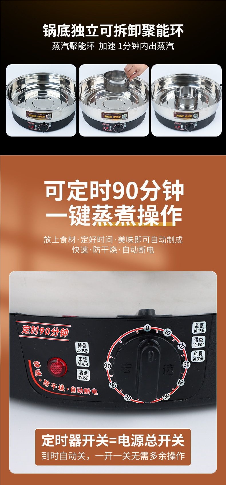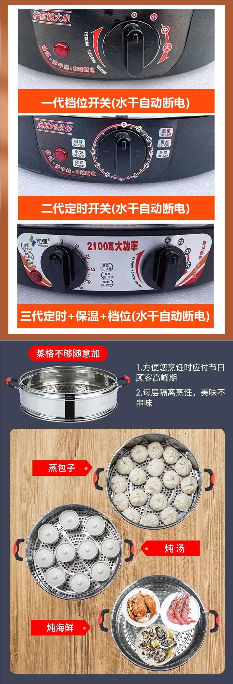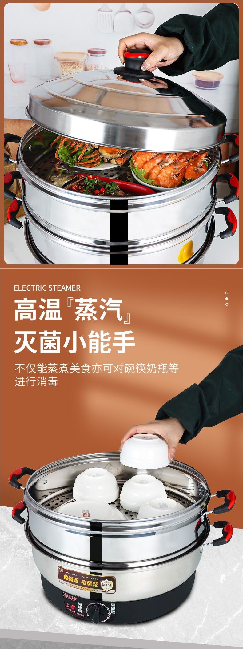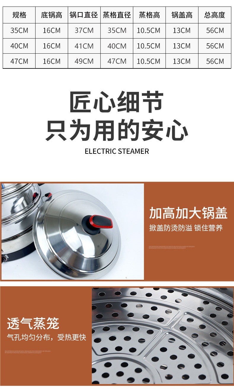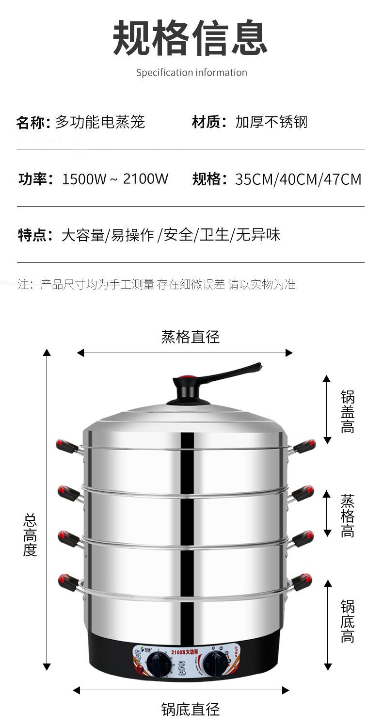 초대형 스테인레스 스틸 전기 기선 대용량 가정용 전기 기선 다기능 3 층 찐 빵 찜 빵 증기