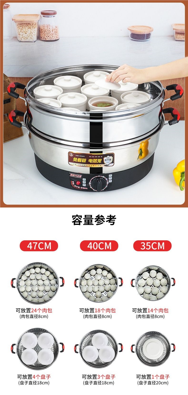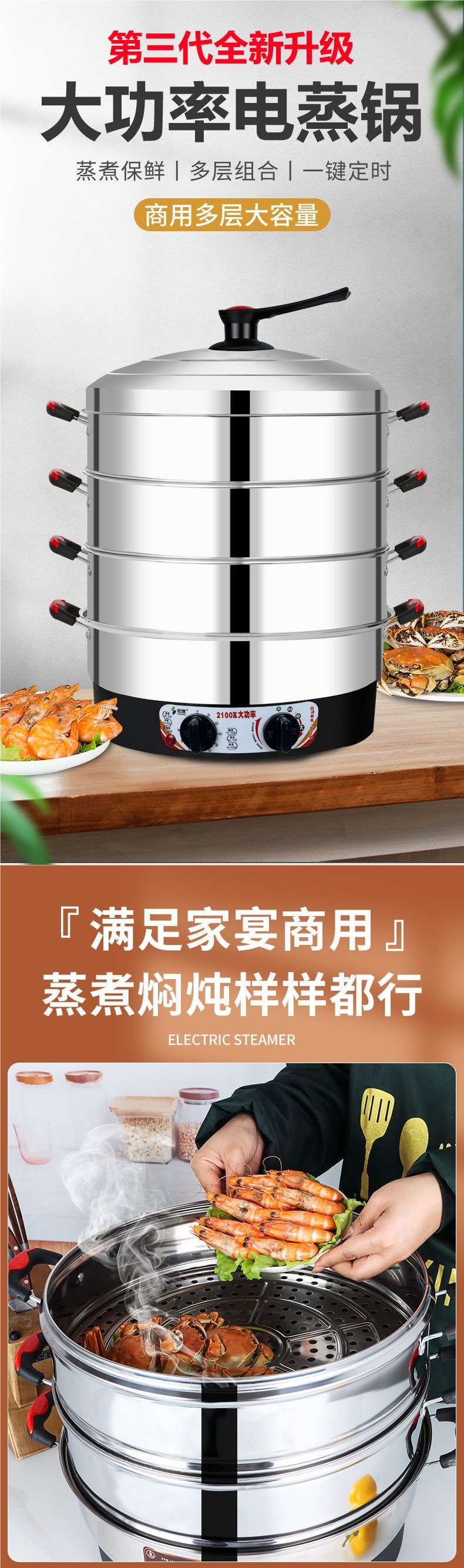 초대형 스테인레스 스틸 전기 기선 대용량 가정용 전기 기선 다기능 3 층 찐 빵 찜 빵 증기스토어 가기