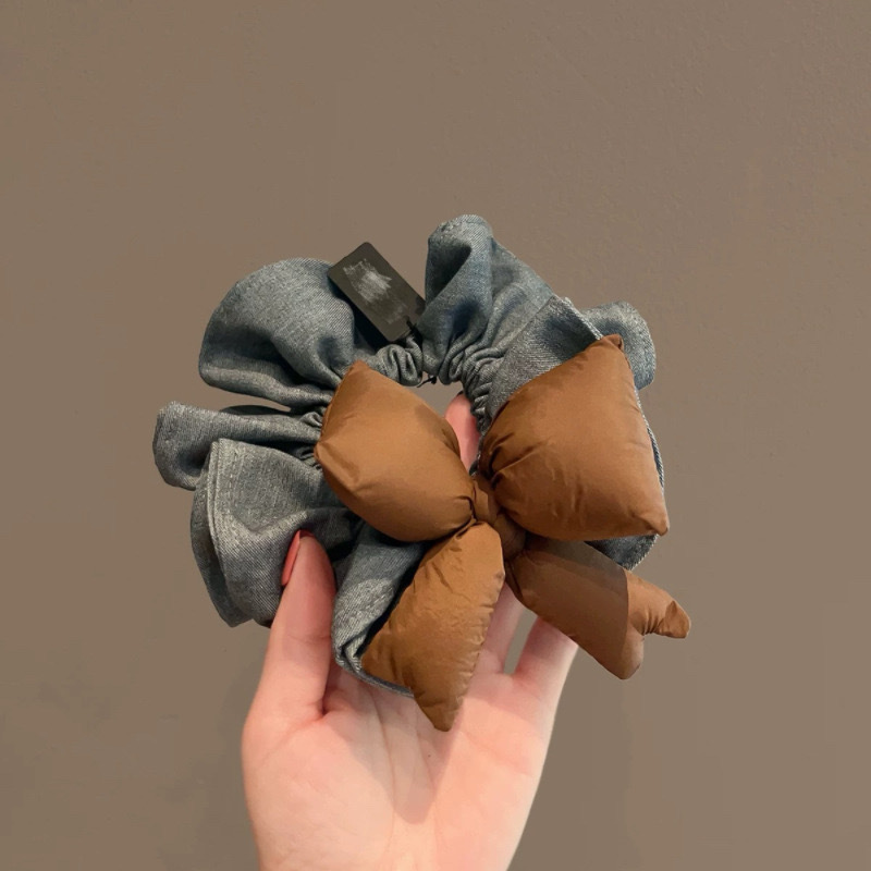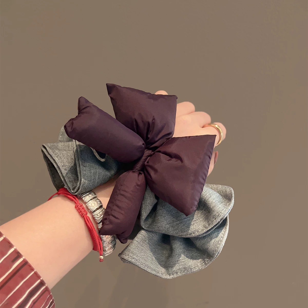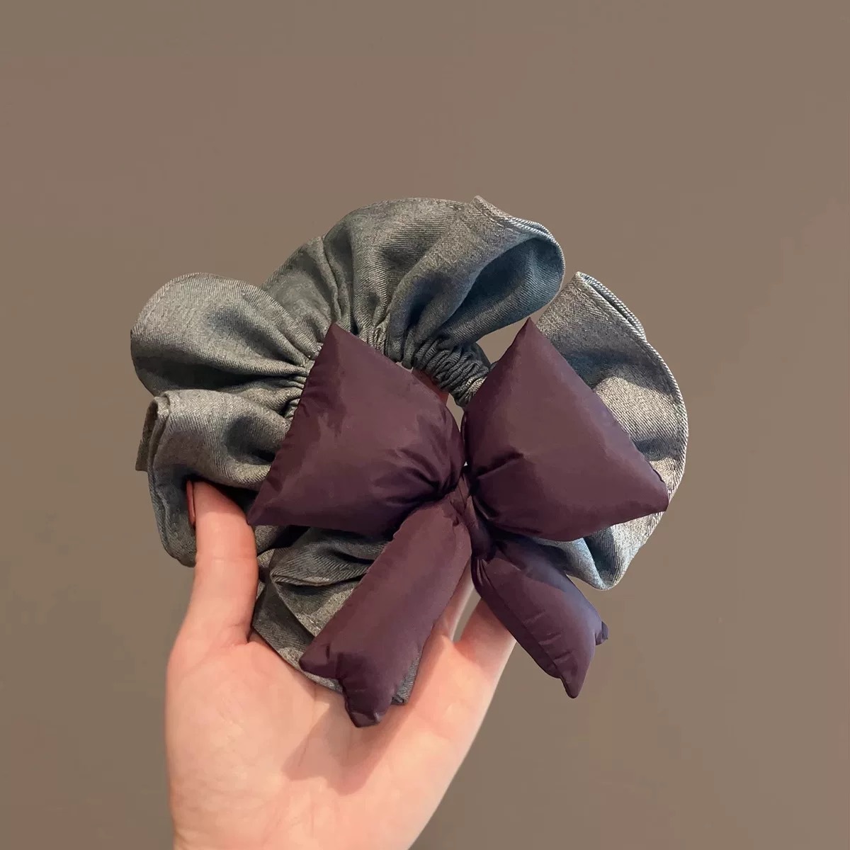 한국 고급 회색 Auricularius Edge 헤어 링 면화로 채워진 보라색 활 헤드 로프 포니 테일 볼 헤어 액세서리 데님