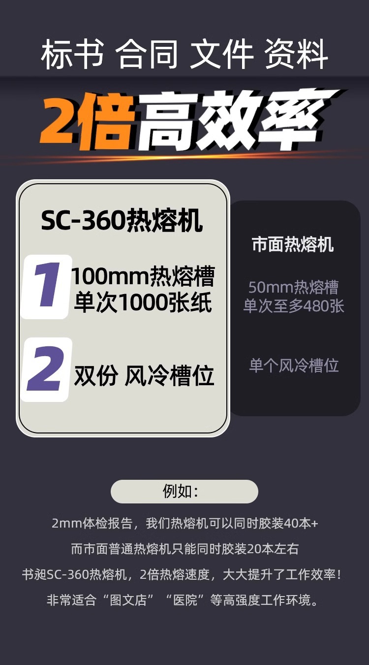 핫멜트 바인딩 머신 우편 SC-360 바인딩 100mm 계약 부드러운 A4 데이터 파일 북 데스크탑 핫멜트 머신