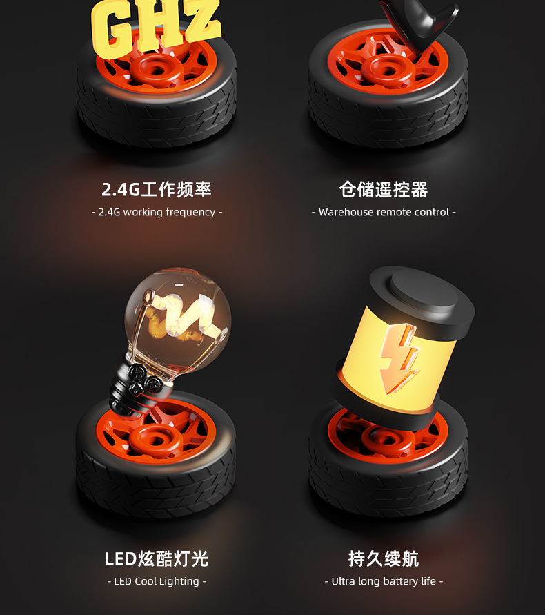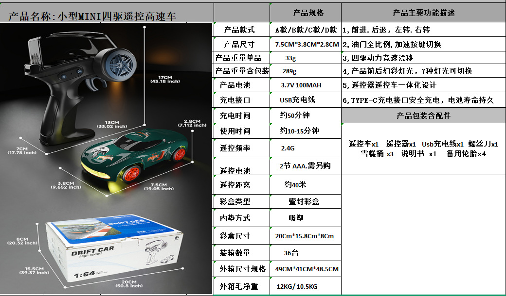 국경 간 신제품 1:64 미니 원격 제어 자동차 4 륜 구동 드리프트 데스크탑 럭셔리카 로고 고속 원격 제어 조명 개념 경주스토어 가기