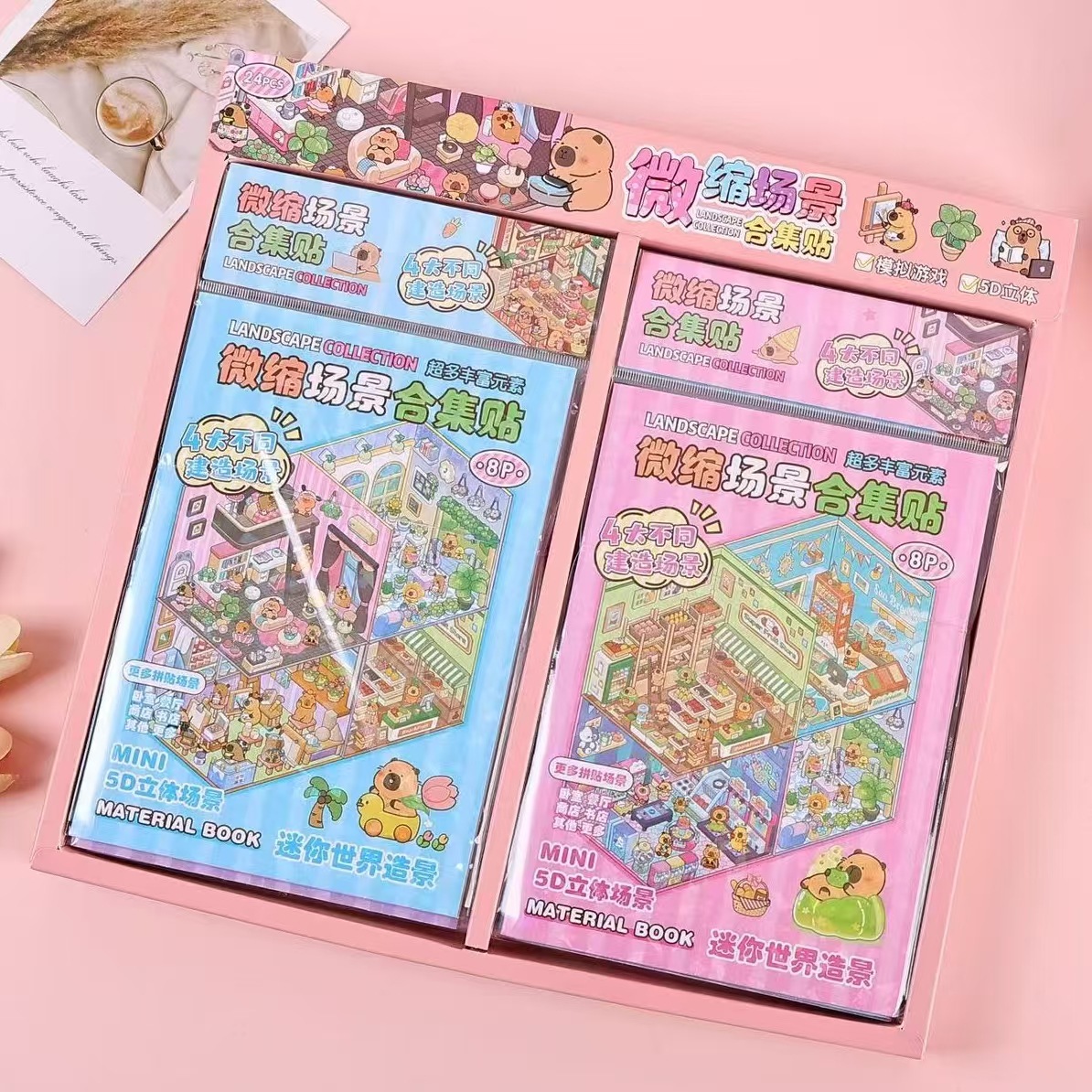 새로운 박스형 3D 미니어처 조경 크리에이티브 스티커 2위안 매장 공급 인기 산리오 카피바라 스티커스토어 가기