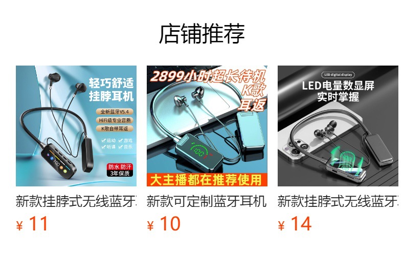 새로운 교수형 목 블루투스 헤드셋 풀 미러 스크린 디지털 디스플레이 긴 내구성 절반 인 이어 생성 가능스토어 가기