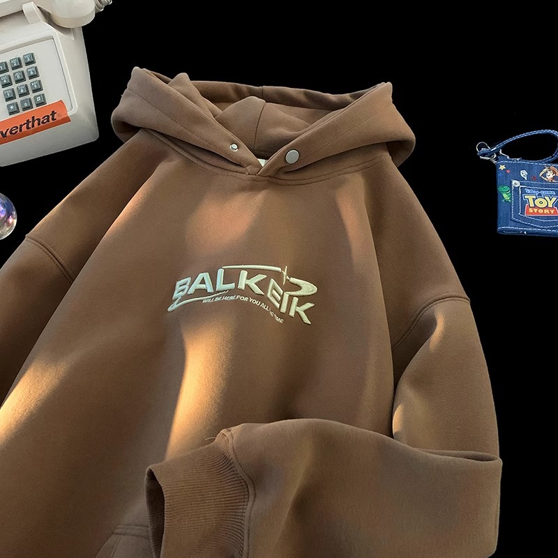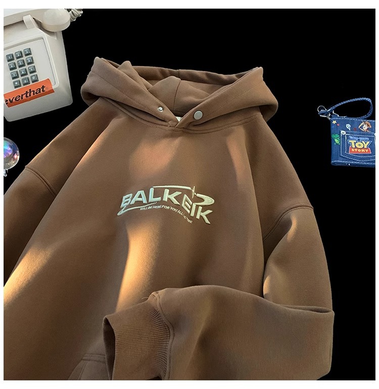 • 브라운 자수 플러스 벨벳 [고급 중국산 면 자수 후드 스웨트셔츠]