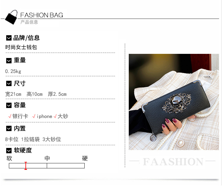 2024 새로운 두개골 패션 성격 좋은 품질 여성 지갑 남성 핸드 가방 휴대 전화 가방 간단한 카드 가방스토어 가기