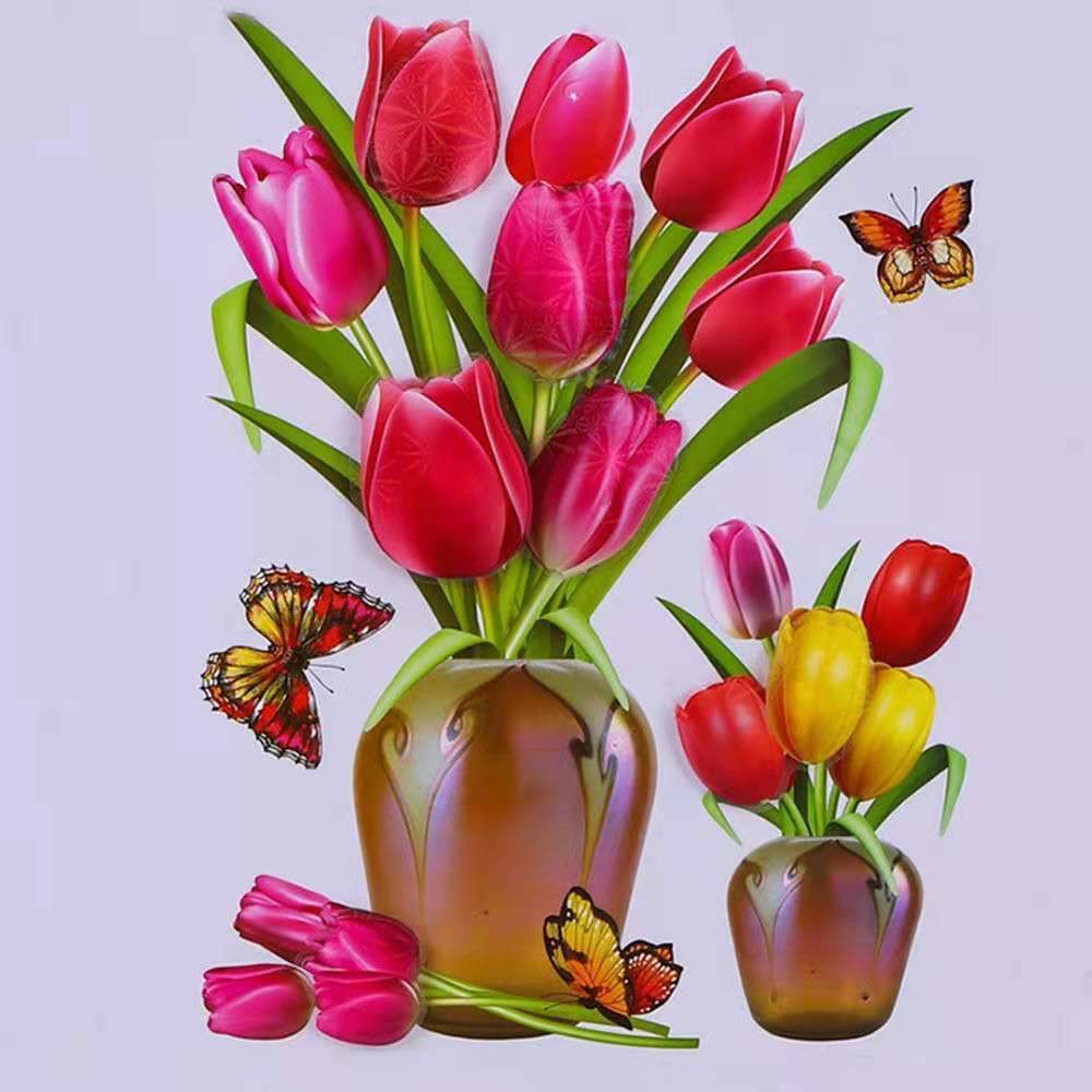 3D 시뮬레이션 꽃병 자기 접착 스티커 거실 침실 배경 벽 스티커 유리 문 냉장고 캐비닛 장식스토어 가기