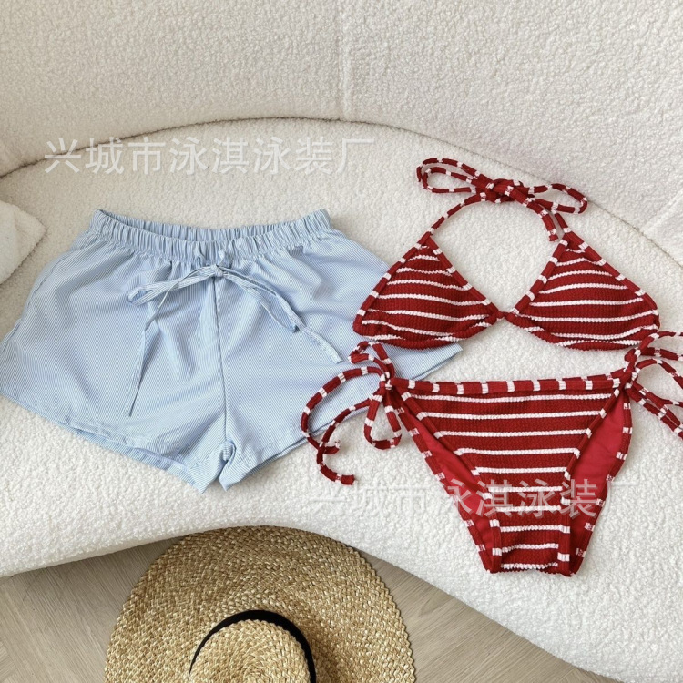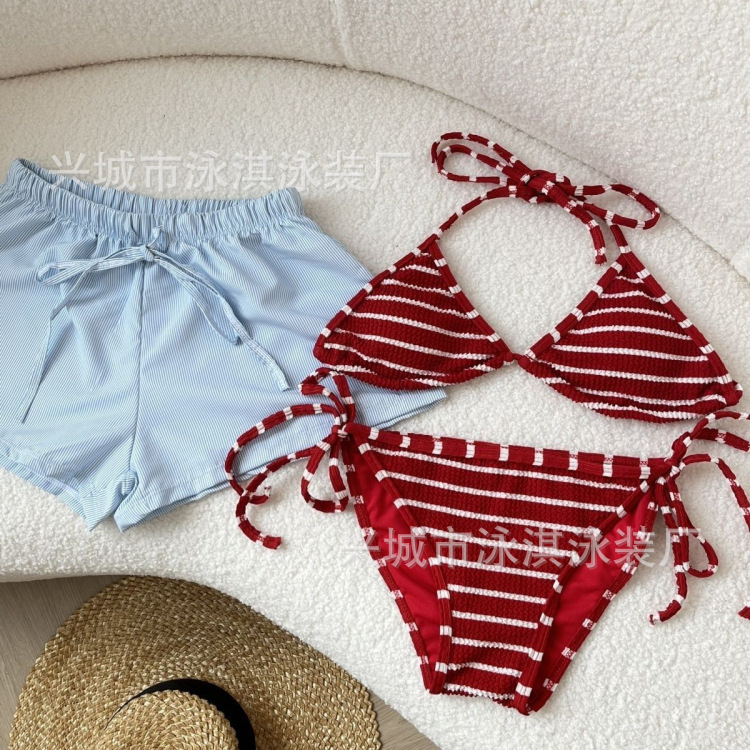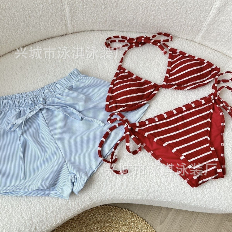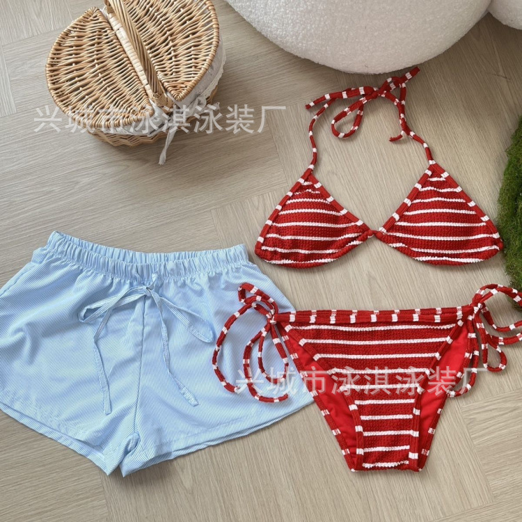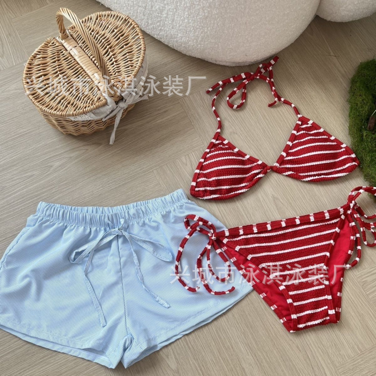 태국 휴가 분할 스포츠 비키니 섹시 스파이스 스트라이프 간단한 느슨한 반바지 스파 비치 수영복스토어 가기