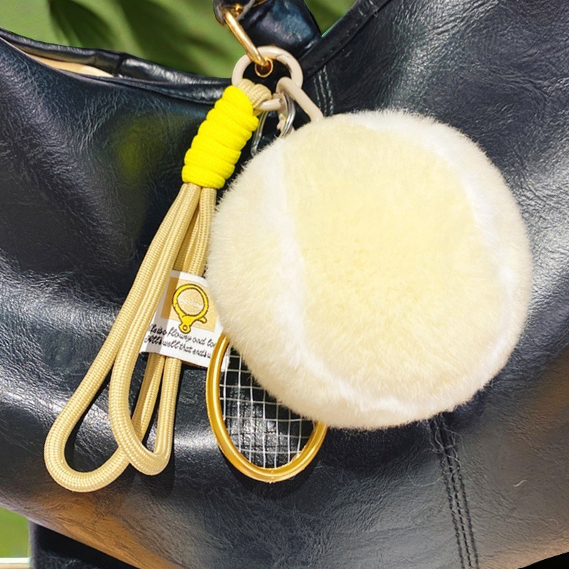 모조 렉스 토끼털 작은 테니스공 가방 열쇠고리 장식품 창의적인 열쇠고리 귀여운 도매 플러시 장식품 작은 선물스토어 가기
