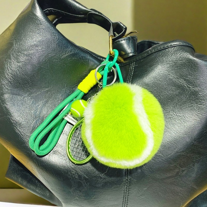 모조 렉스 토끼털 작은 테니스공 가방 열쇠고리 장식품 창의적인 열쇠고리 귀여운 도매 플러시 장식품 작은 선물