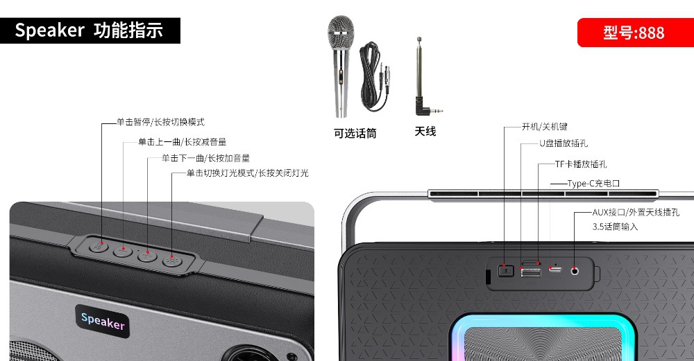 국경 888 금속 질감 태양 블루투스 스피커 듀얼 스피커 고출력 무선 미니 멋진 서브 우퍼