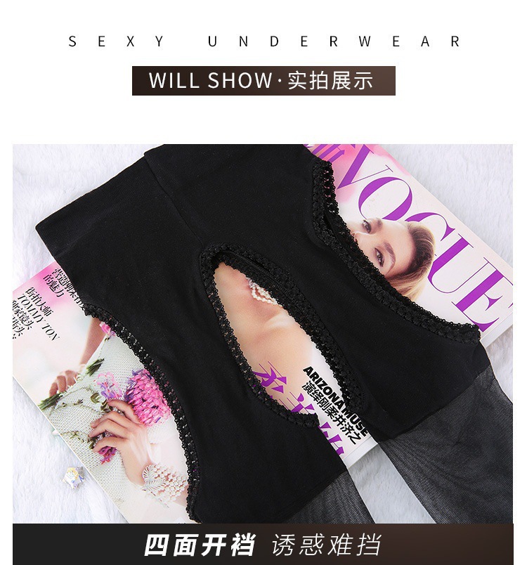 开档丝袜夏季超薄款防勾丝连裤袜女性感免脱四面开档诱惑情趣丝袜