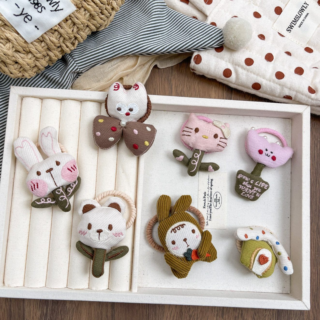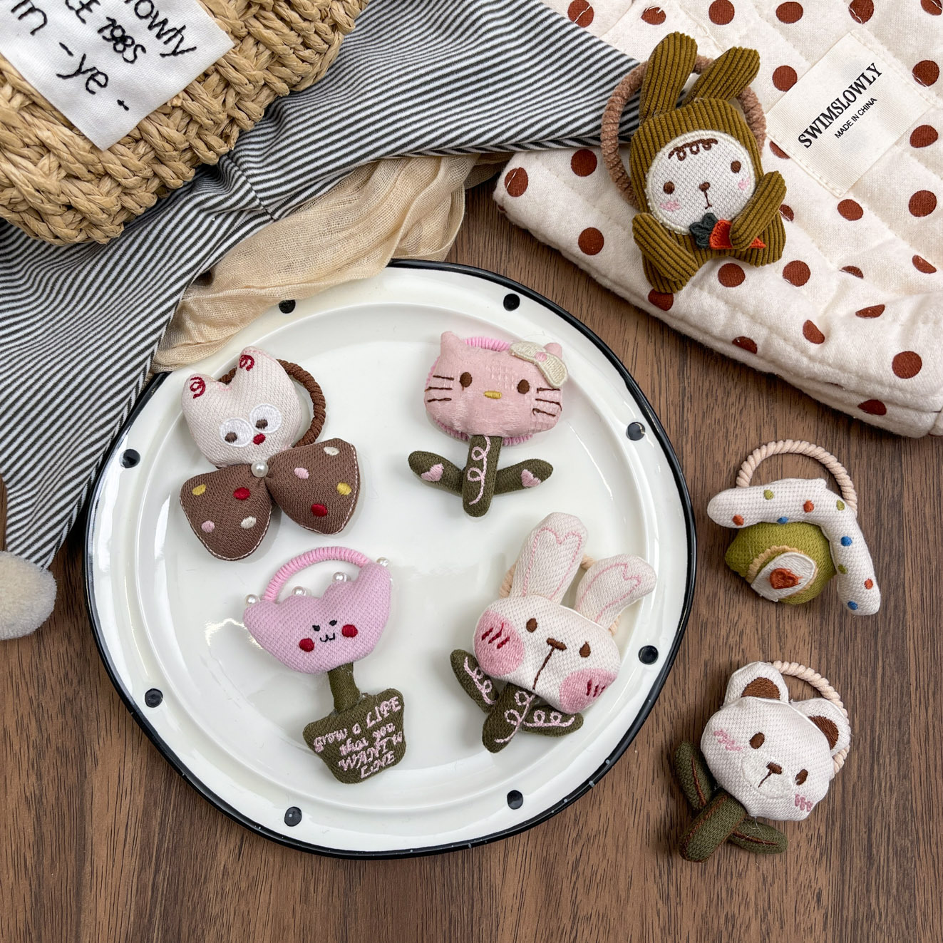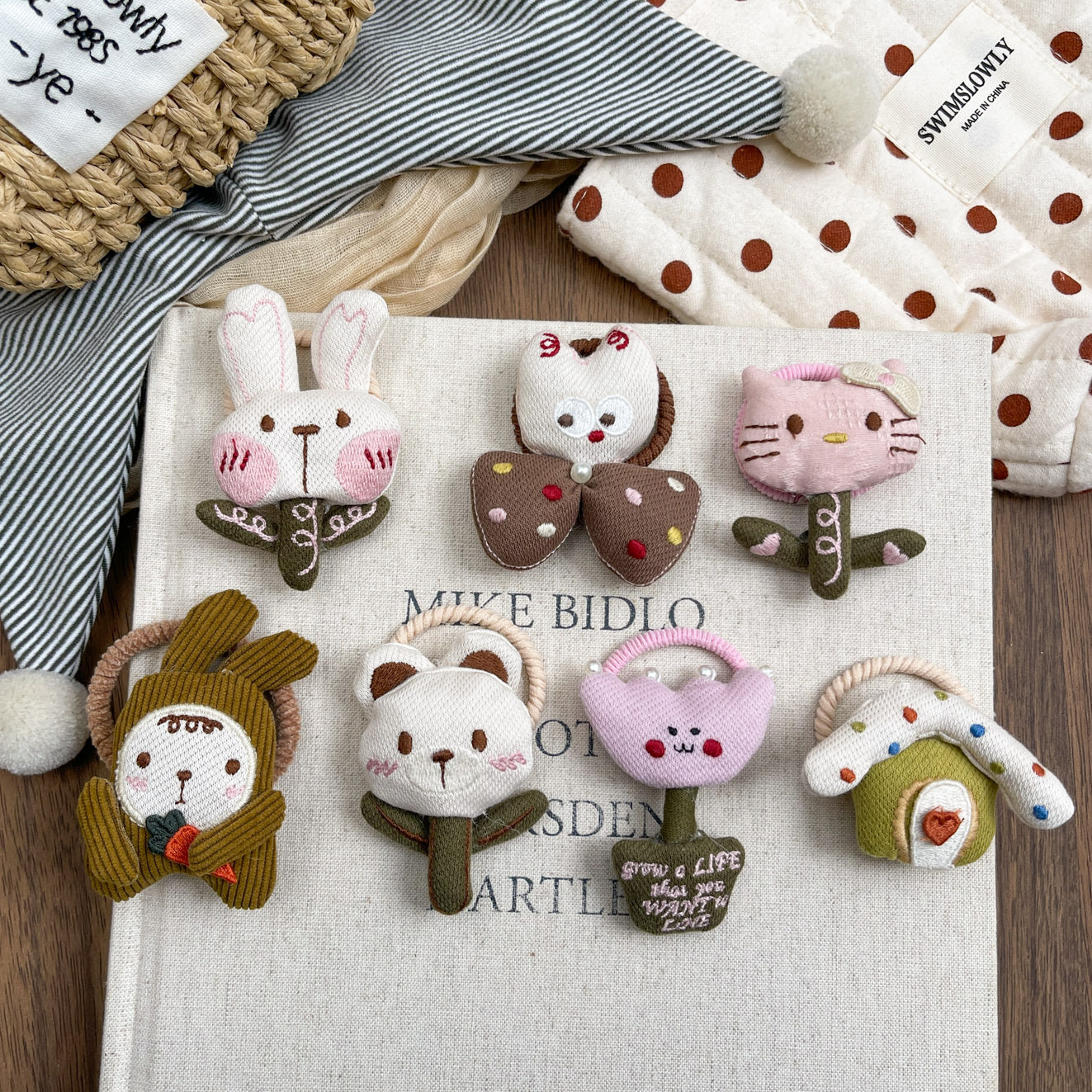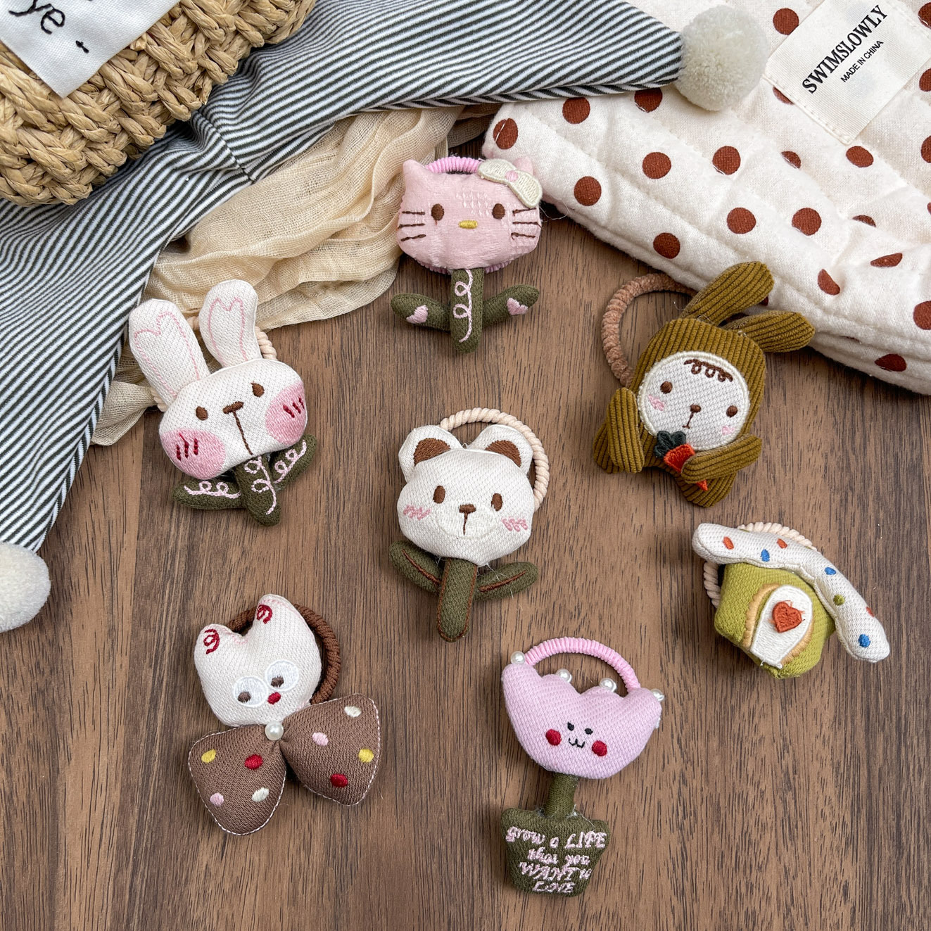 한국 만화 귀여운 어린이 머리 반지 새로운 토끼 작은 꽃 머리 반지 소녀 머리 로프 헤어 액세서리