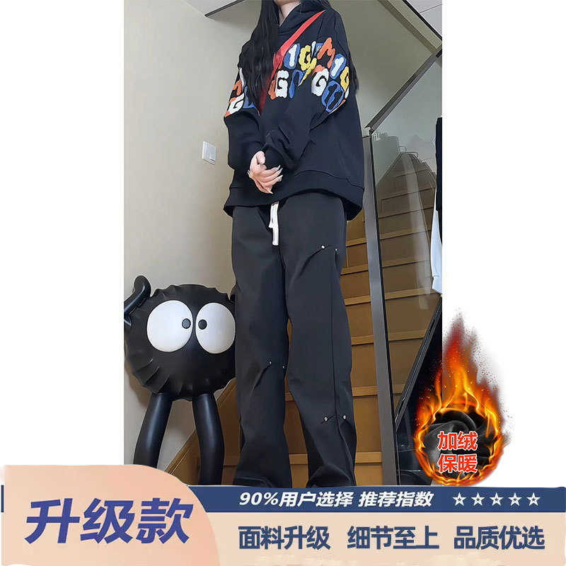 핑크 리벳 바지 여성용 겨울 기모 두꺼운 방수 작업복 어린 소녀를위한 따뜻한 바지스토어 가기