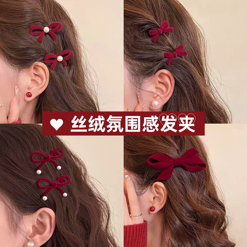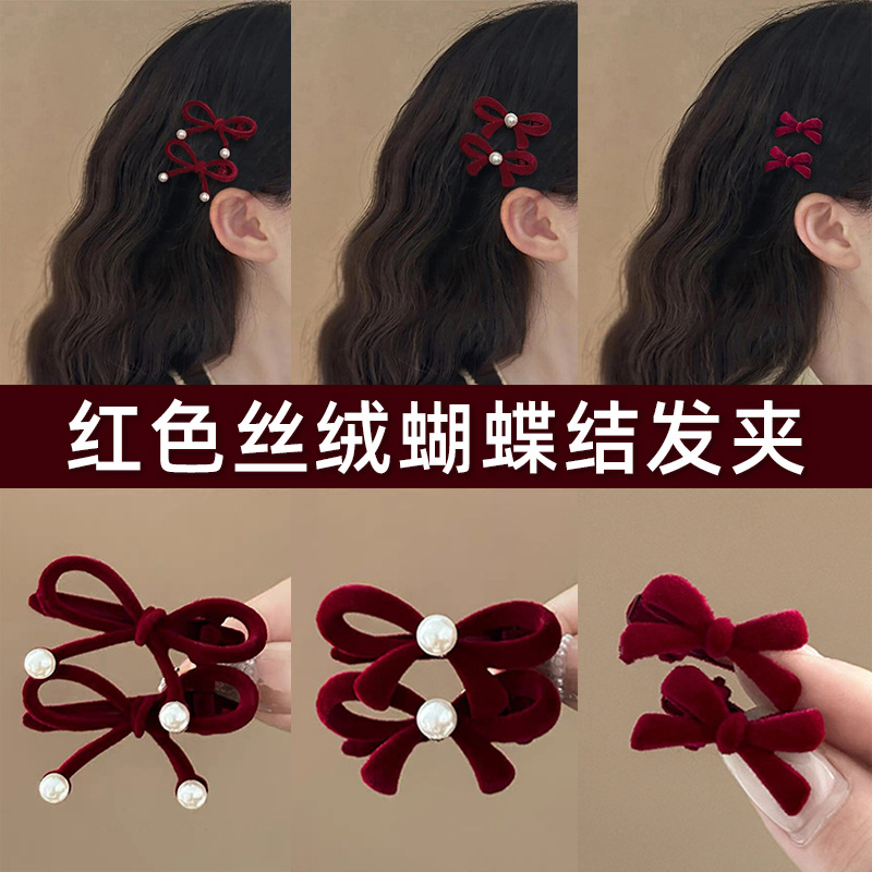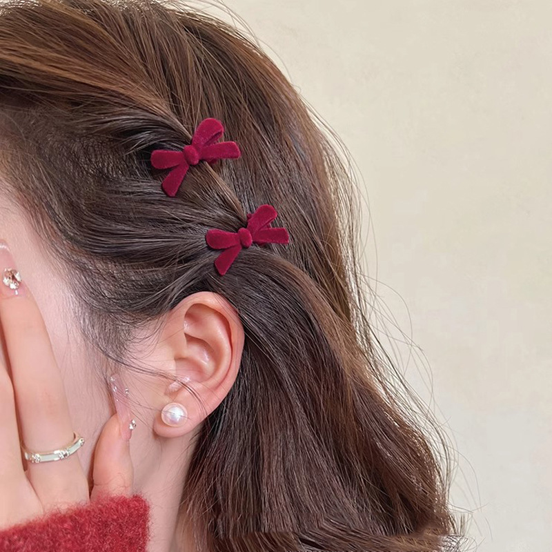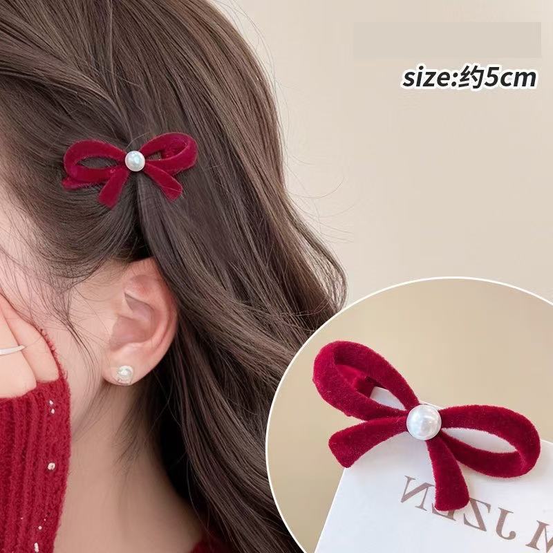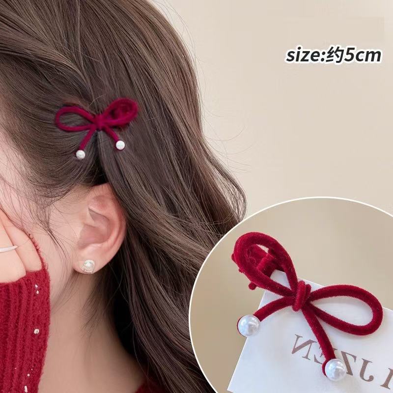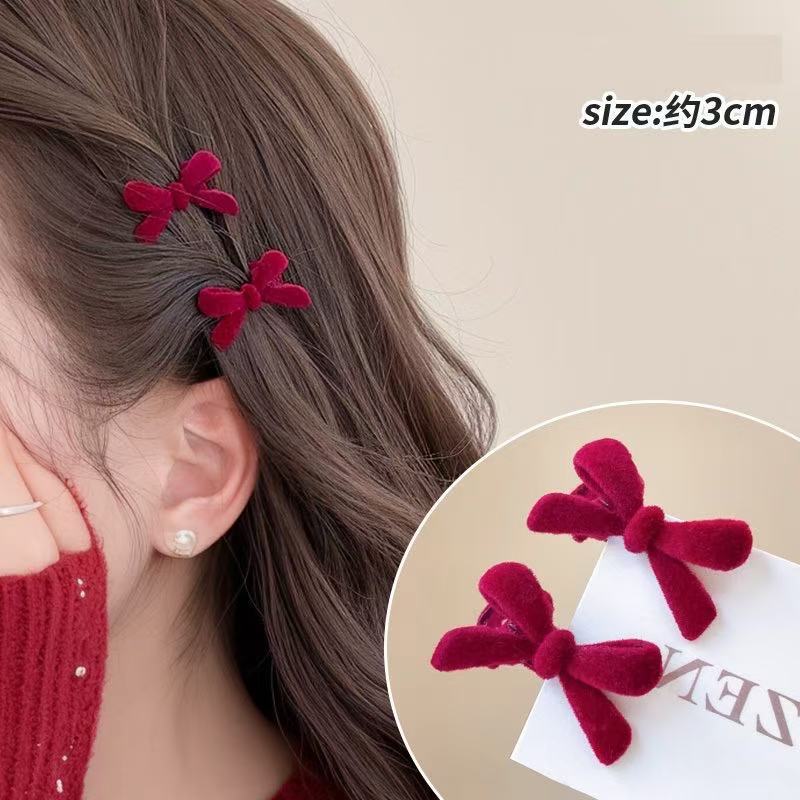 2025 년 새해 가을 겨울 축제 빨간 활 머리핀 귀여운 스몰 사이즈 앞쪽 클립 머리띠 클립