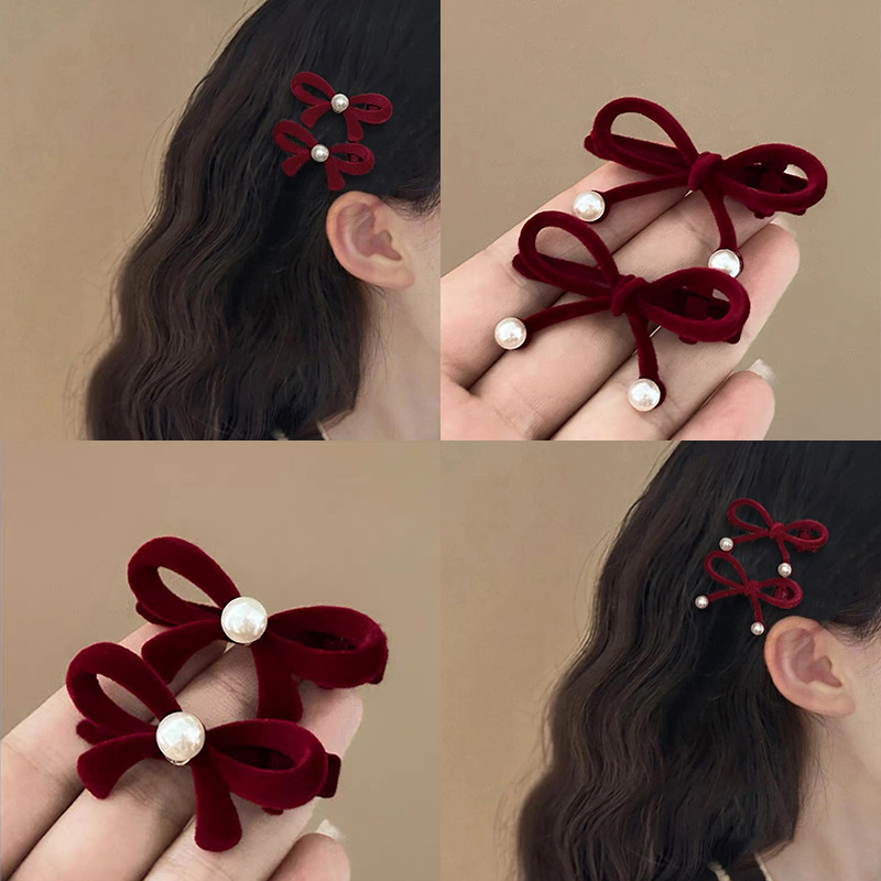 2025 년 새해 가을 겨울 축제 빨간 활 머리핀 귀여운 스몰 사이즈 앞쪽 클립 머리띠 클립스토어 가기