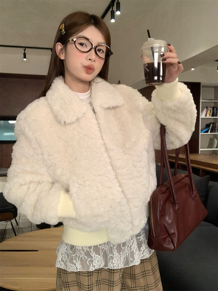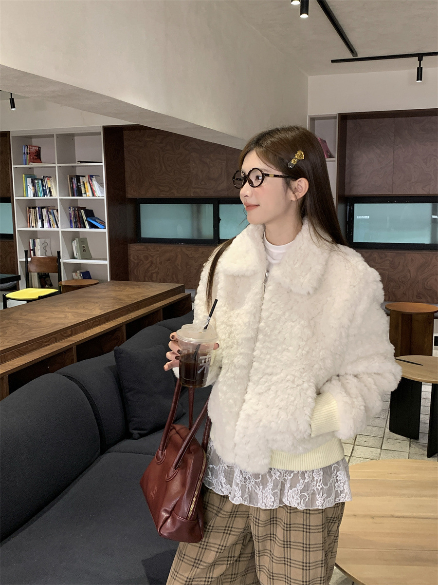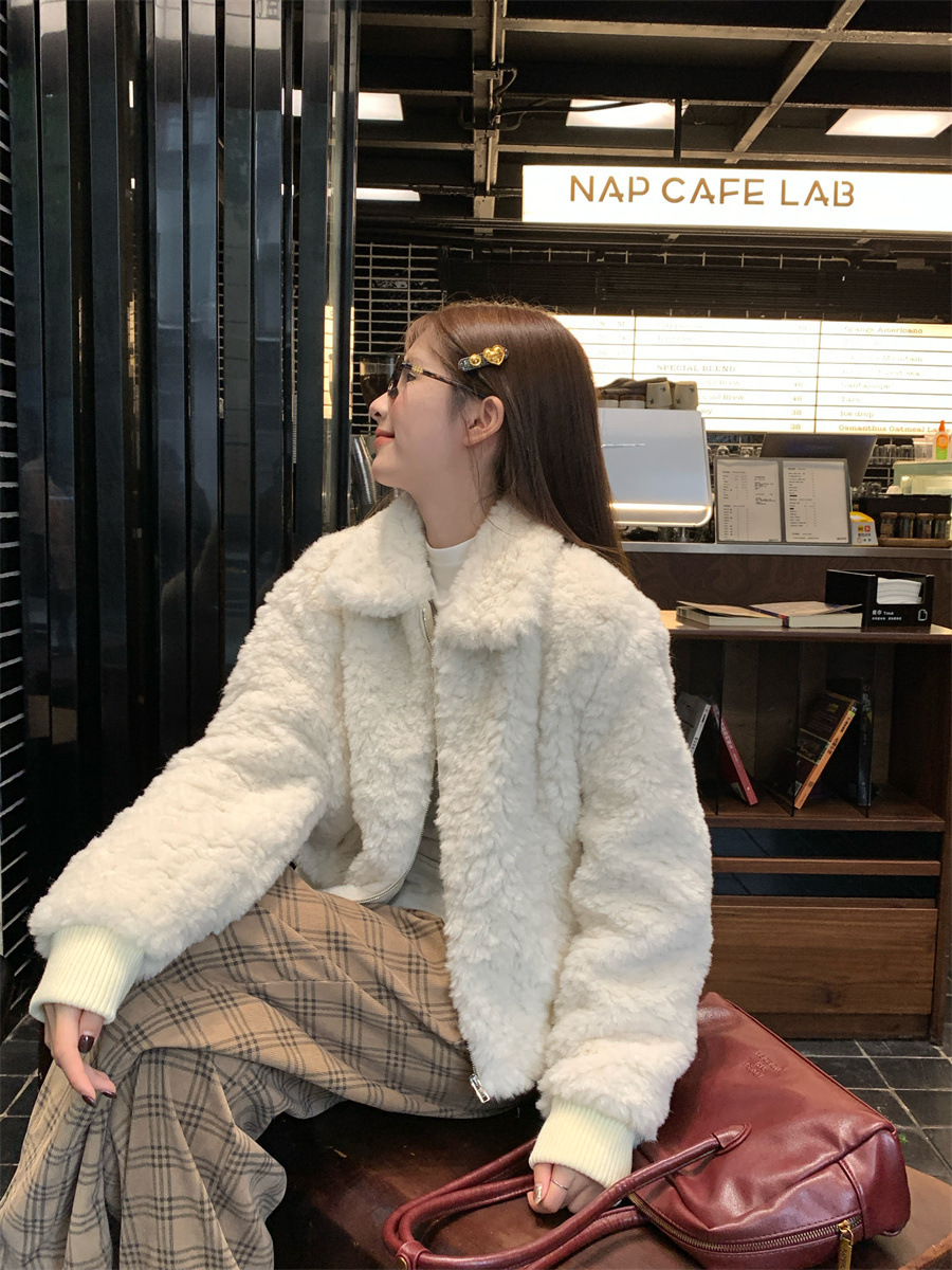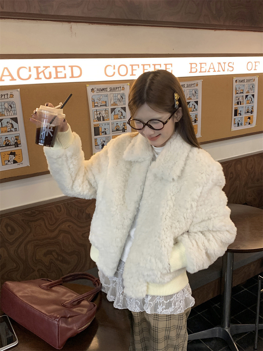 진짜 샷! 한국식 옷깃 하이 엔드 양모 패딩 두꺼운 코트 슬리밍 올매치 스몰 여자 자켓