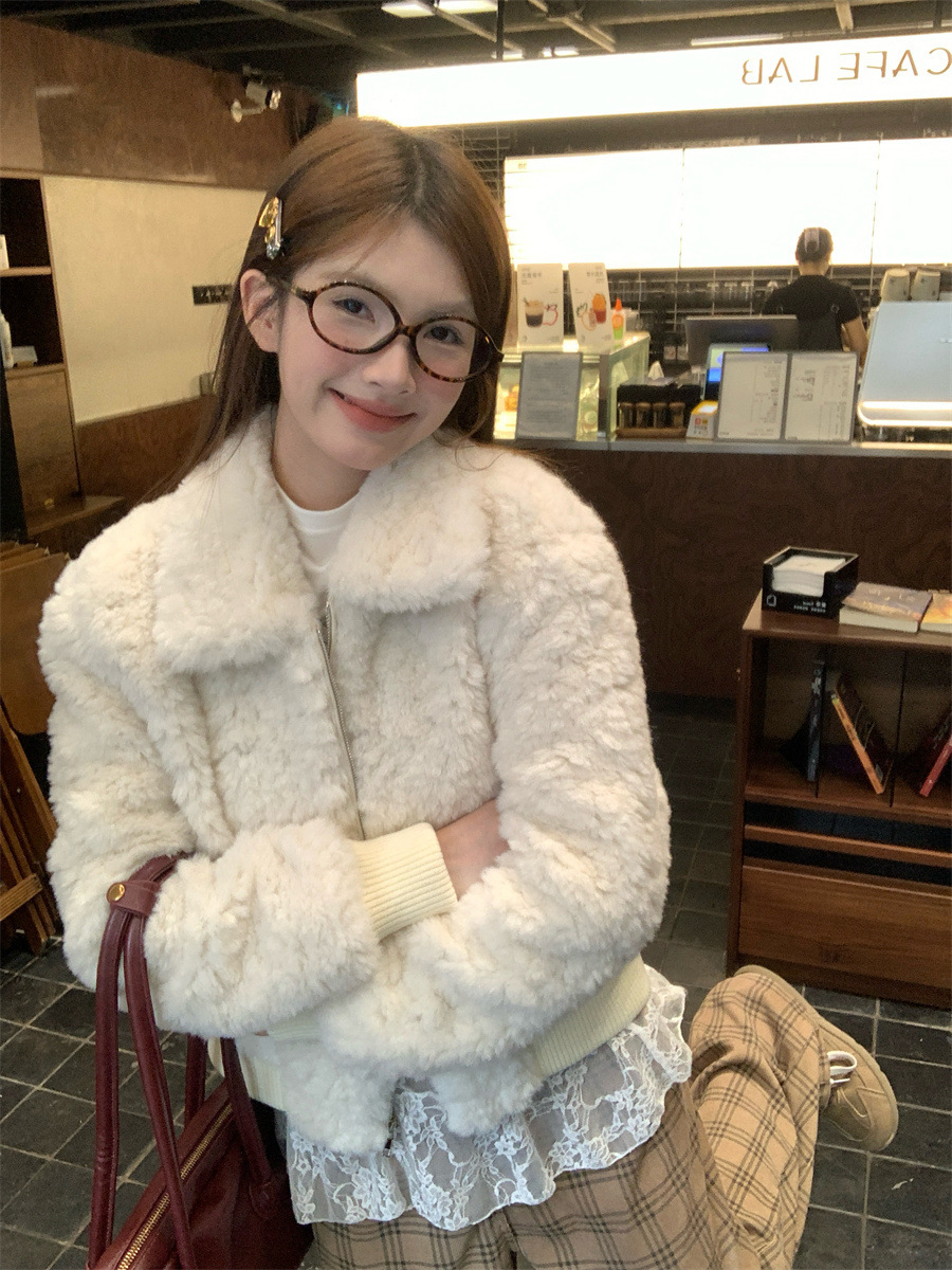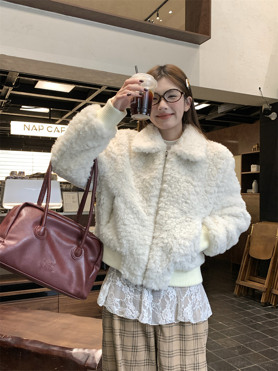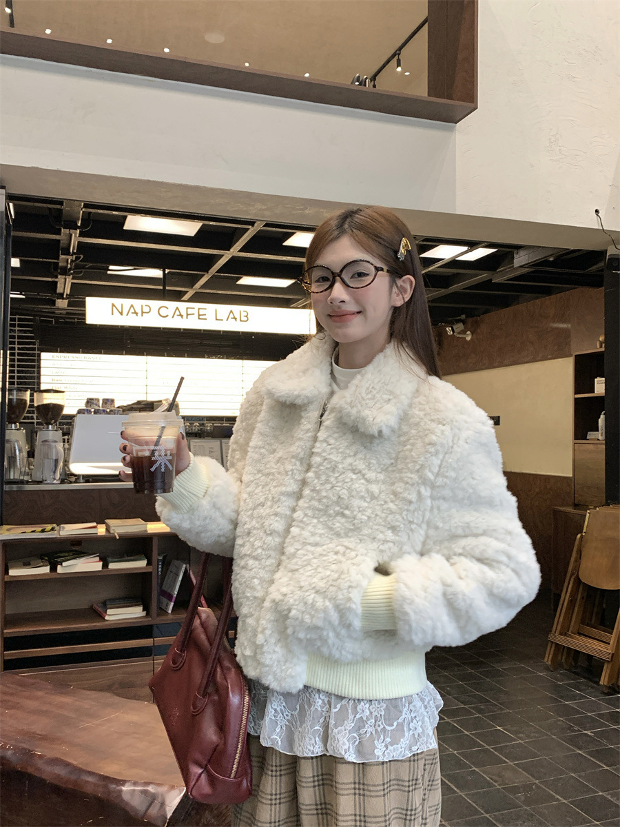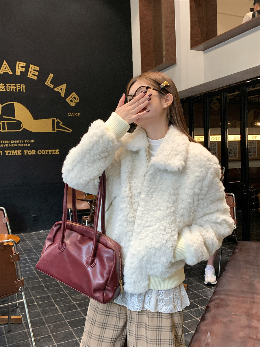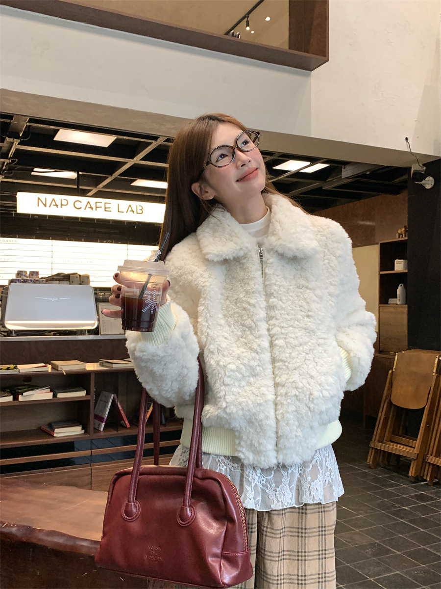 진짜 샷! 한국식 옷깃 하이 엔드 양모 패딩 두꺼운 코트 슬리밍 올매치 스몰 여자 자켓