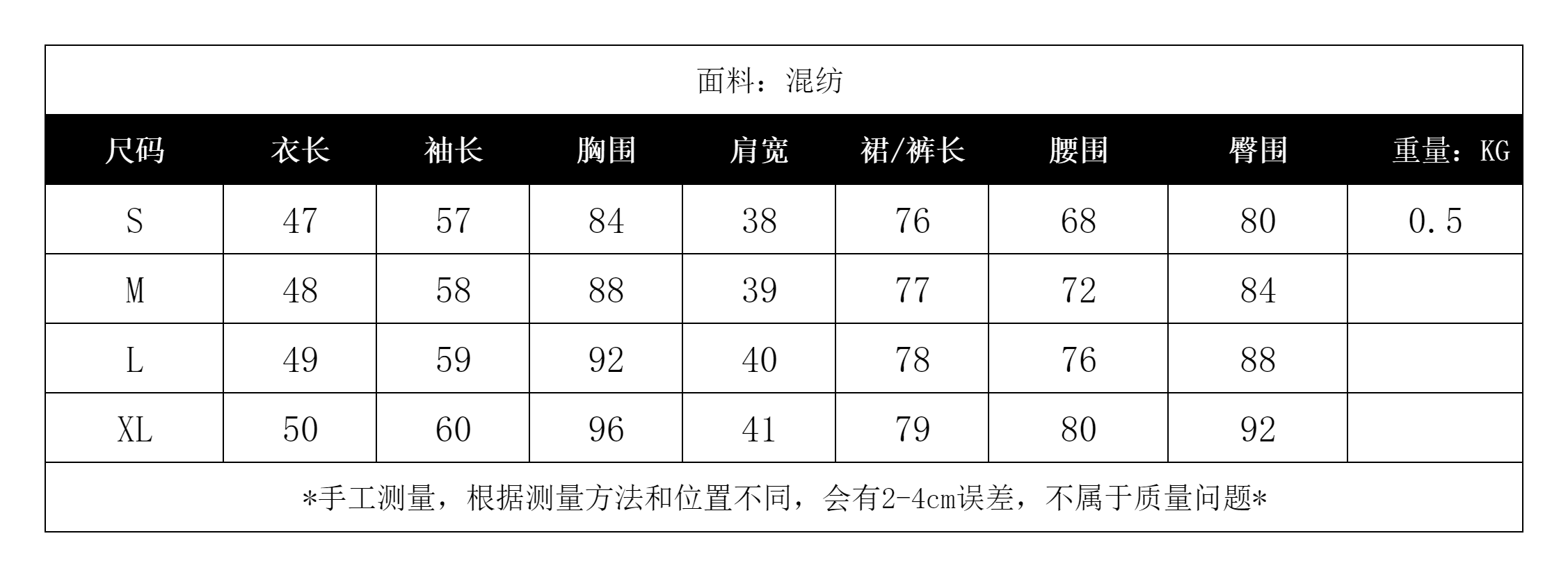 * 尺寸均为手工测量,存在2-4cm误差属于正常范围 *