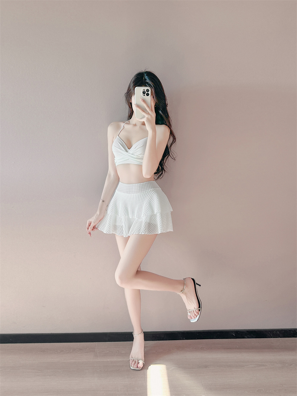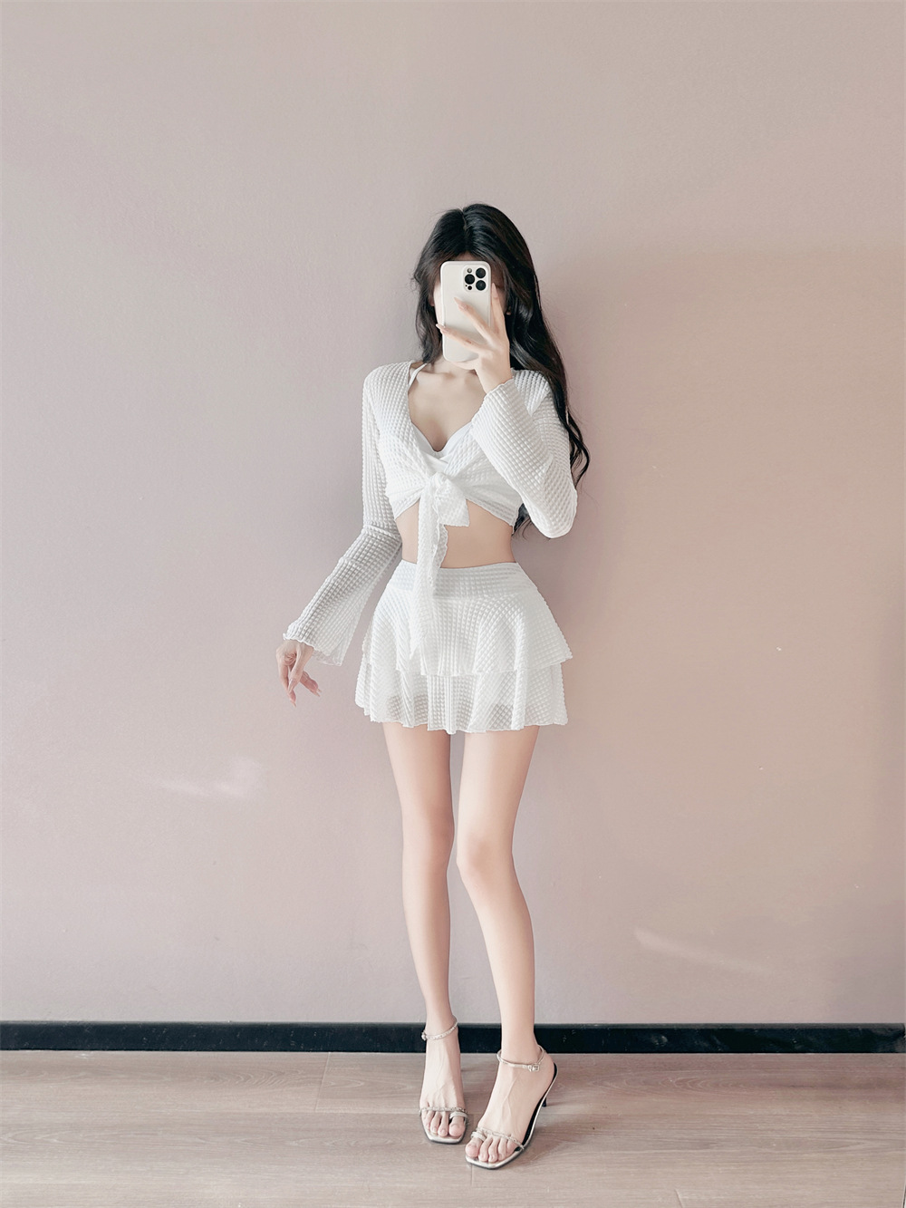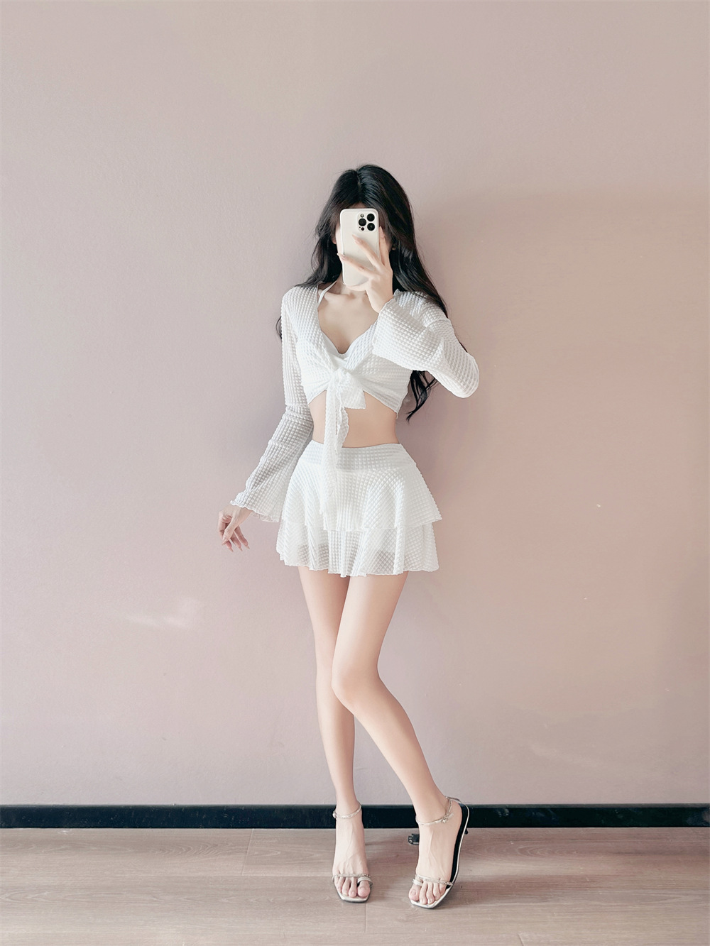 2025 새로운 치마 분할 수영복 여성 블라우스 3 피스 세트 온천 휴가 보수적 인 큰 가슴 푸시 업 태양 보호스토어 가기
