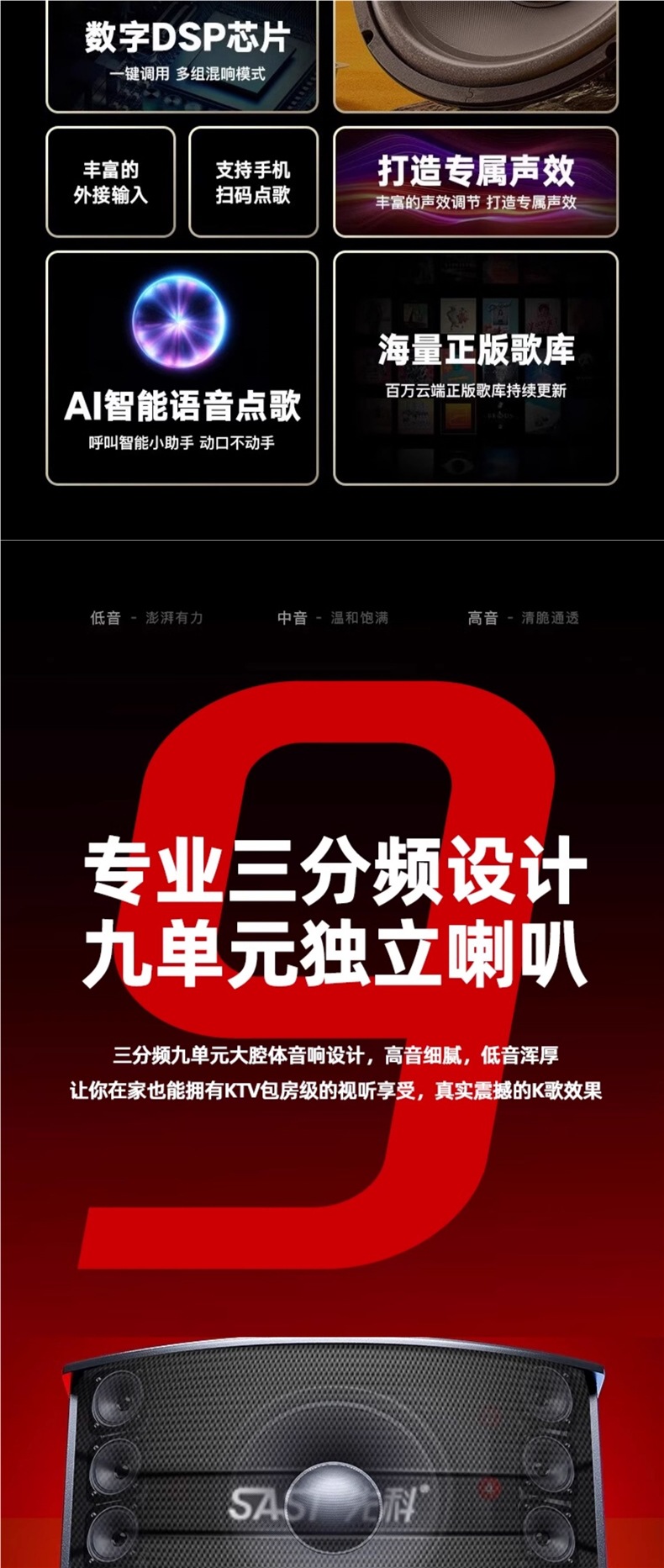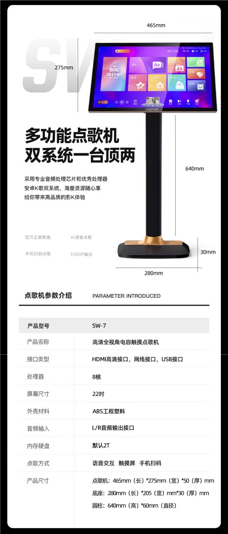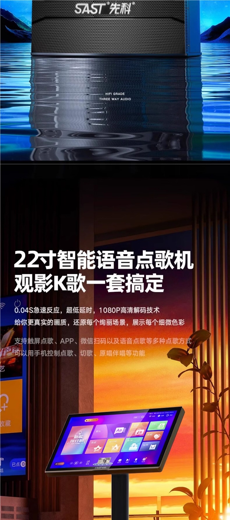 • [쌍당 8.7inch 유닛] + 22inch 터치스크린 노래방 기계 3T + 파워 앰프 + 디럭스 버전 충전 마이크 + 액세서리