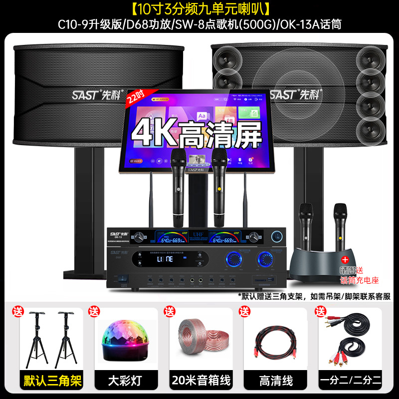 • [쌍당 10.9inch 유닛] + 22inch 터치스크린 노래방 기계 500G + 전력 증폭기 + 버전 충전 마이크 + 액세서리