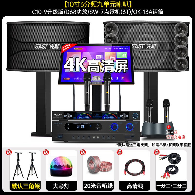 • [쌍당 10.9inch 유닛] + 22inch 터치스크린 노래방 기계 3T + 전력 증폭기 + 버전 충전 마이크 + 액세서리