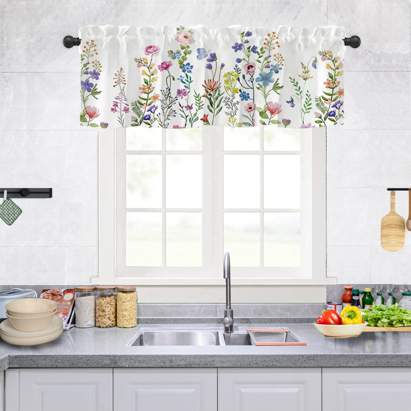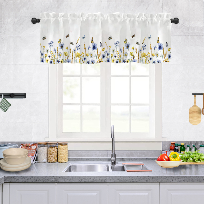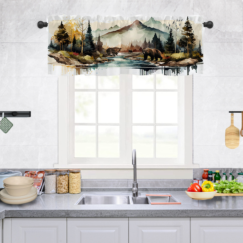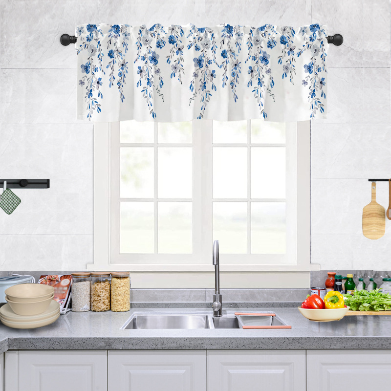 국경 디지털 인쇄 커튼 헤드 레스토랑 주방 거실 비 천공 짧은 문 커튼 그늘 작은 커튼 창 커튼