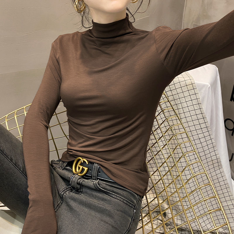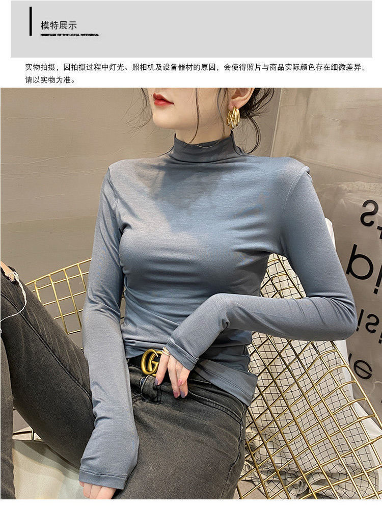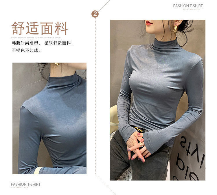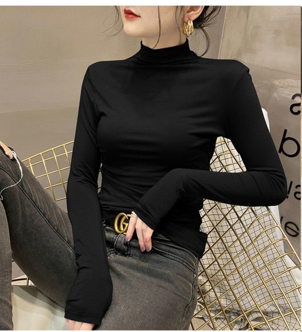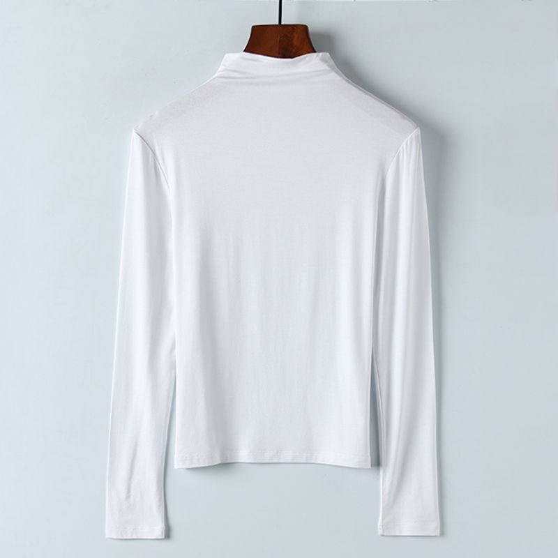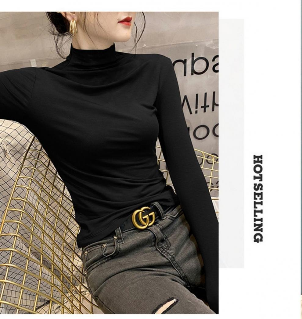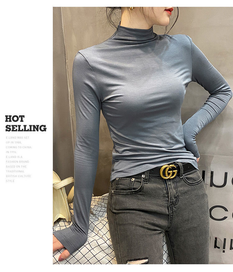 모달베이스 셔츠 여성용 긴팔 티셔츠 하프 하이 칼라 봄 가을 겨울 2024 새로운 올 매치 인테리어 웨스턴 스타일 타이트탑