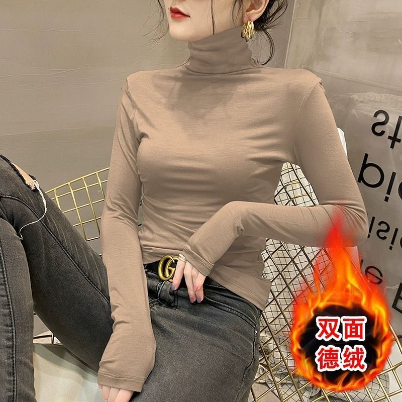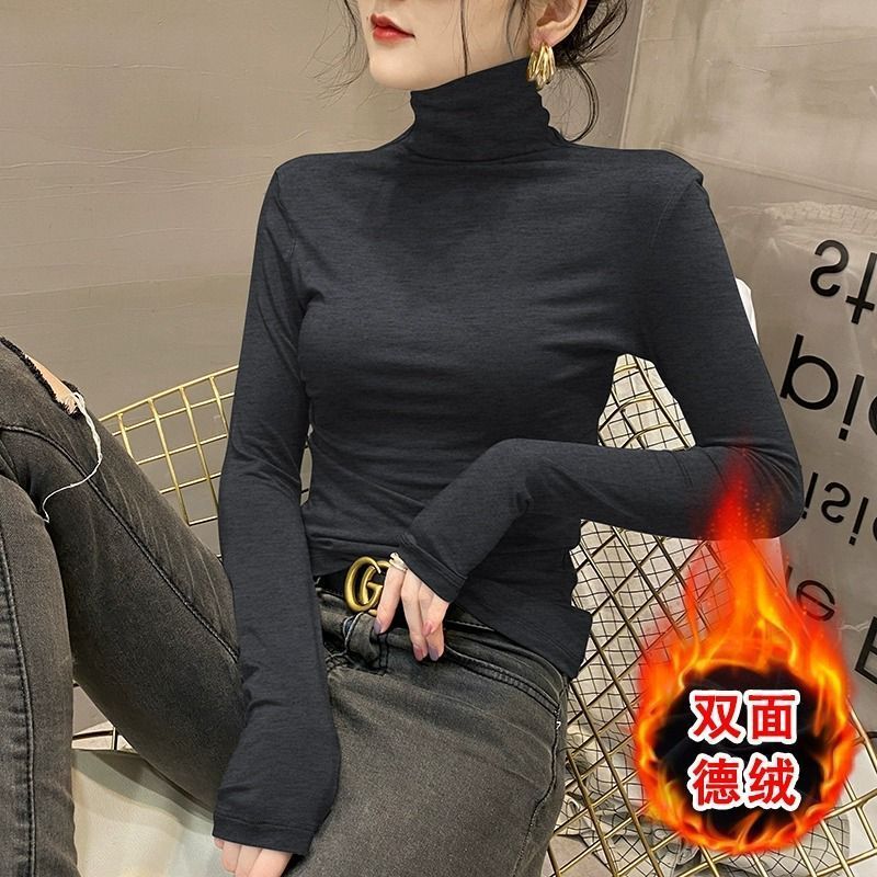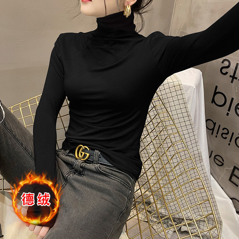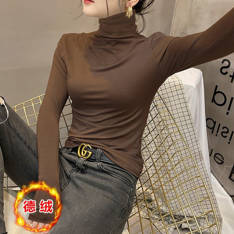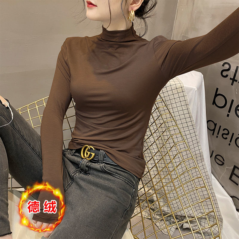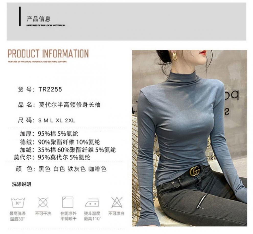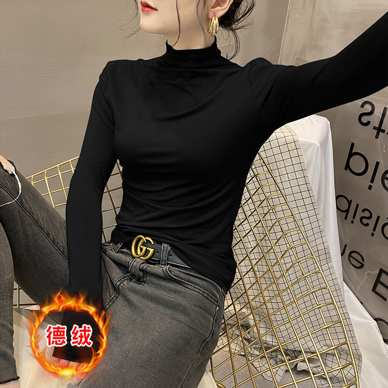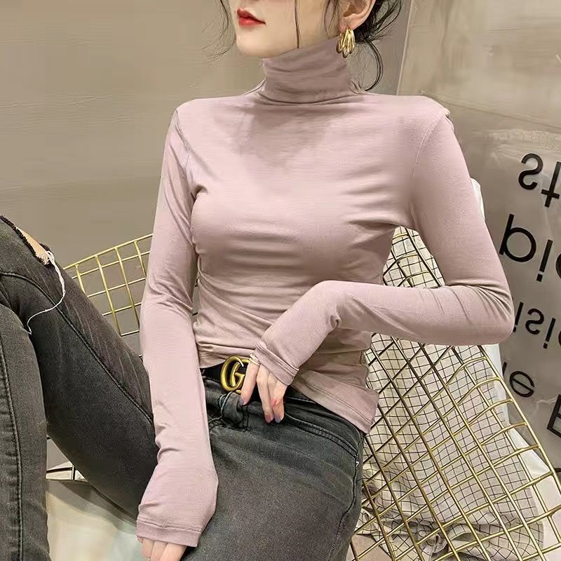모달베이스 셔츠 여성용 긴팔 티셔츠 하프 하이 칼라 봄 가을 겨울 2024 새로운 올 매치 인테리어 웨스턴 스타일 타이트탑