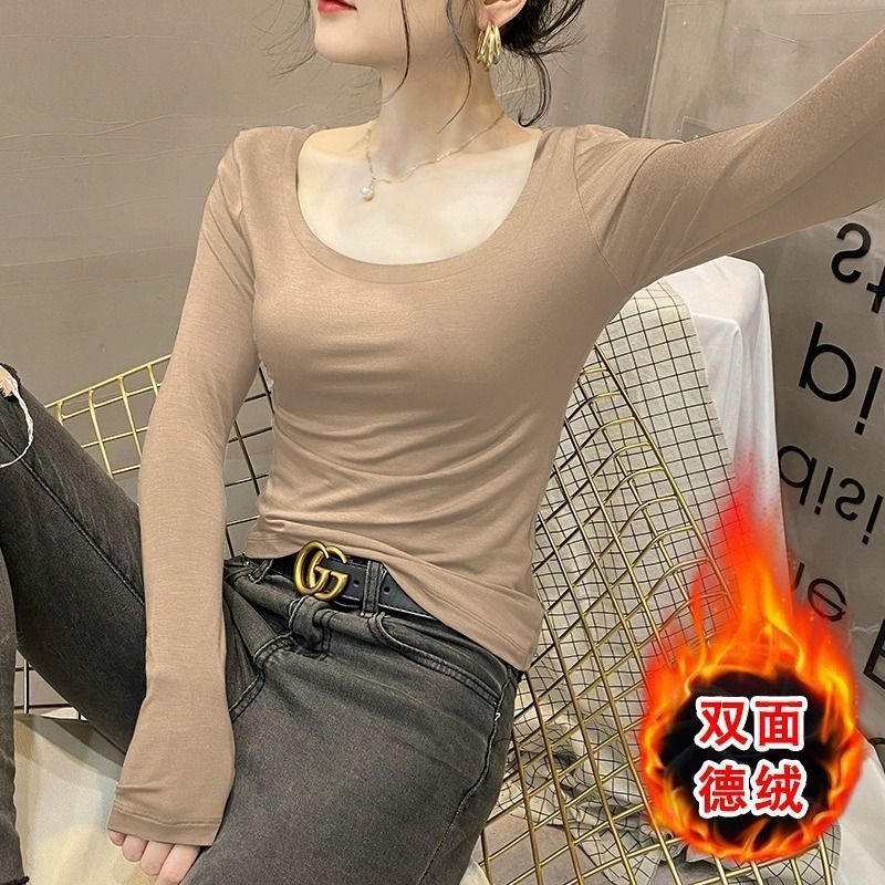 모달베이스 셔츠 여성용 긴팔 티셔츠 하프 하이 칼라 봄 가을 겨울 2024 새로운 올 매치 인테리어 웨스턴 스타일 타이트탑스토어 가기