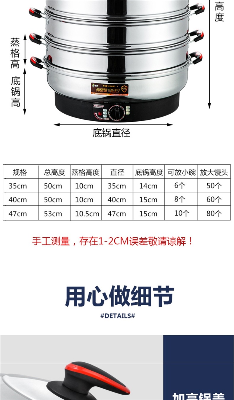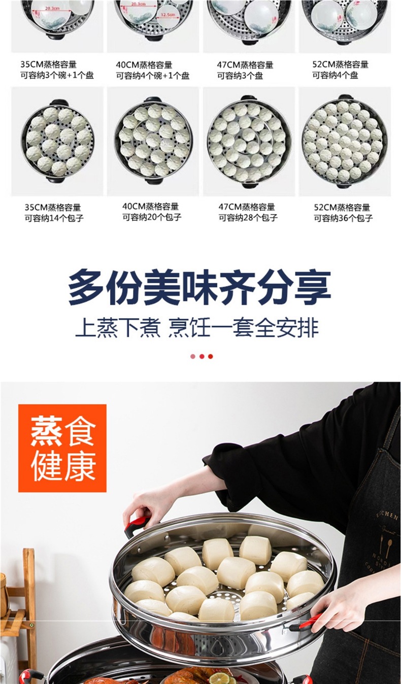다기능 52cm 전기 증기선 상용 플러그인 열 보존 스테인레스 스틸 자체 구동 증기선 3 층 찐 빵스토어 가기