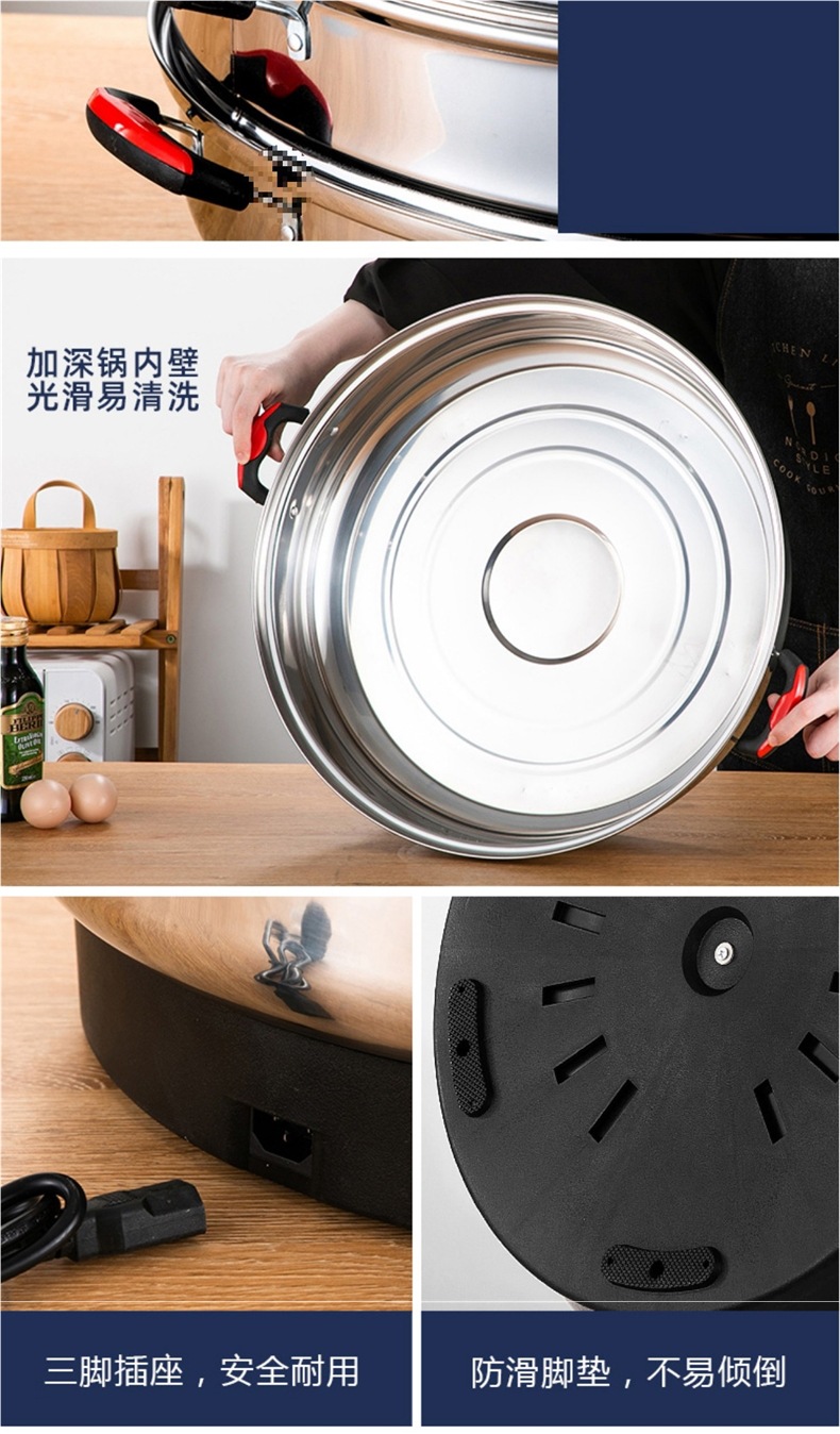 다기능 52cm 전기 증기선 상용 플러그인 열 보존 스테인레스 스틸 자체 구동 증기선 3 층 찐 빵