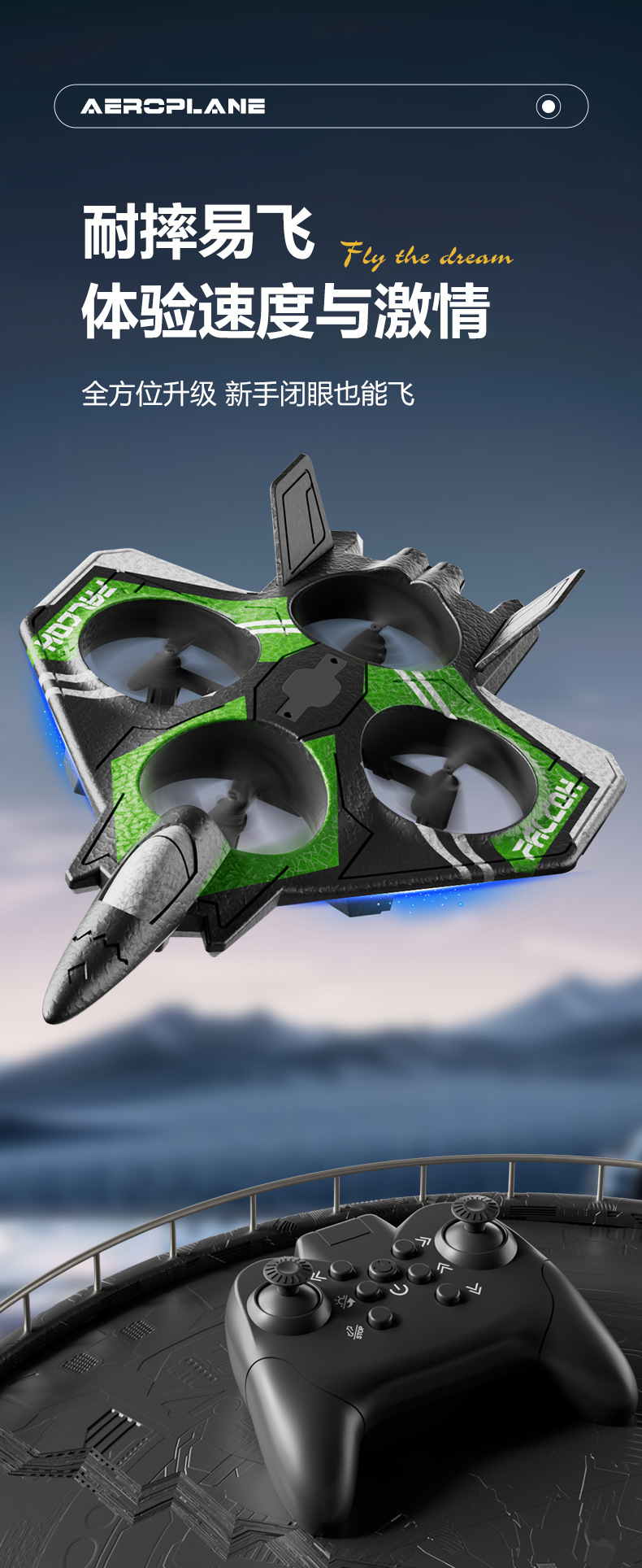 • 녹색 차세대 4축 스턴트 폼 항공기