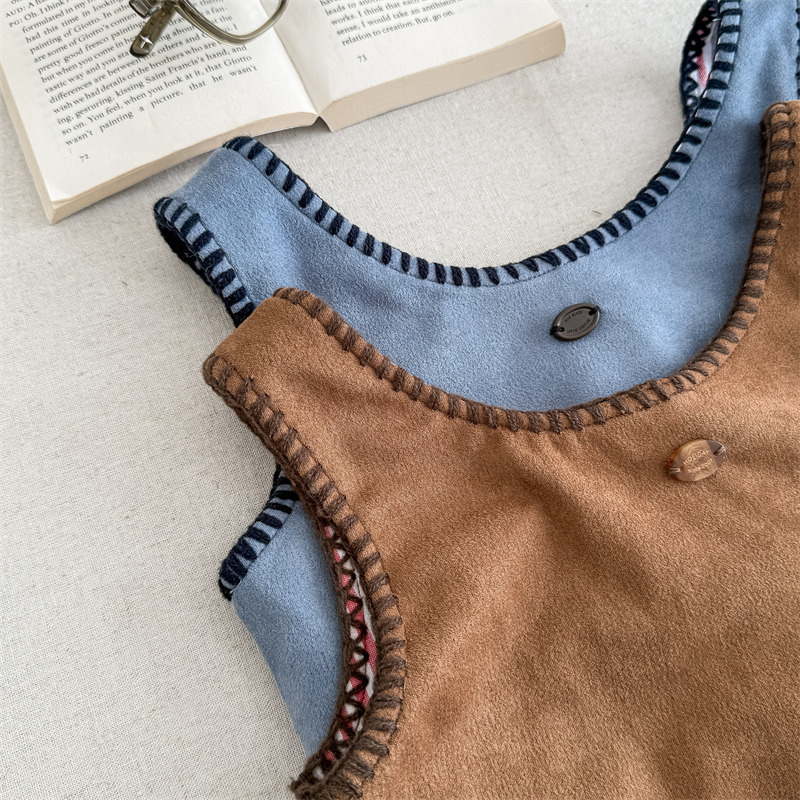 2025 봄 소녀 양복 조끼 아기 데님 바람 특수 공예 잠금 가장자리 작은 양복 조끼 카디건 코트 짠 아동복