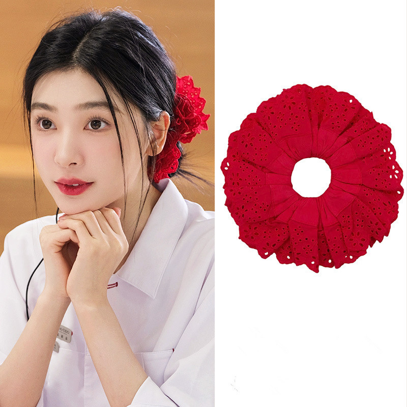 2025 년 신년 레트로 레드 대형 직분 헤어 링 여성 헤어 로프 고급 축제 헤어 로프 새해 첫날 헤어 링 헤어 액세서리