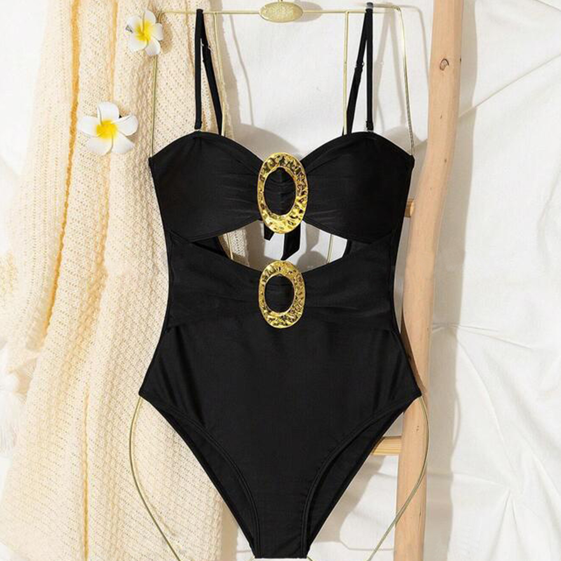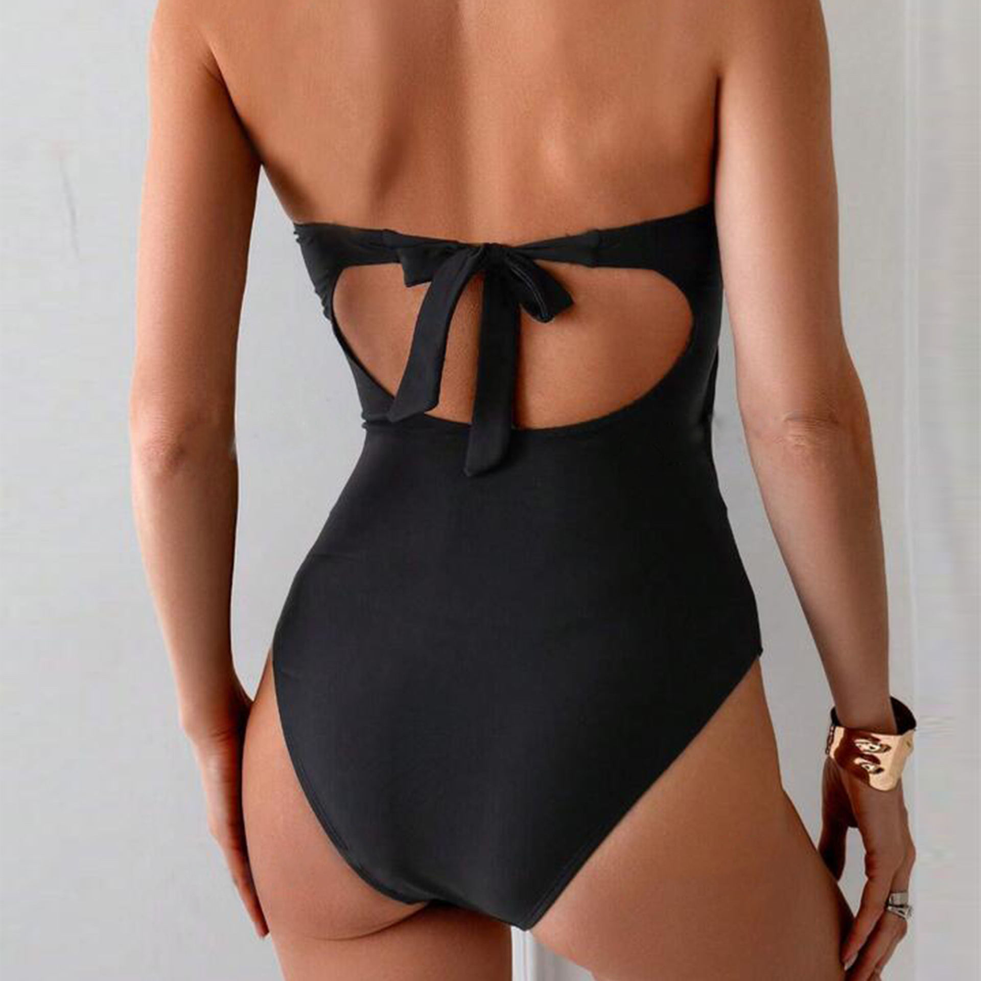 2025 국경 새로운 패션 유럽과 미국의 단색 섹시한 튜브 탑 분리 가능한 어깨 끈 원피스 여성용 수영복