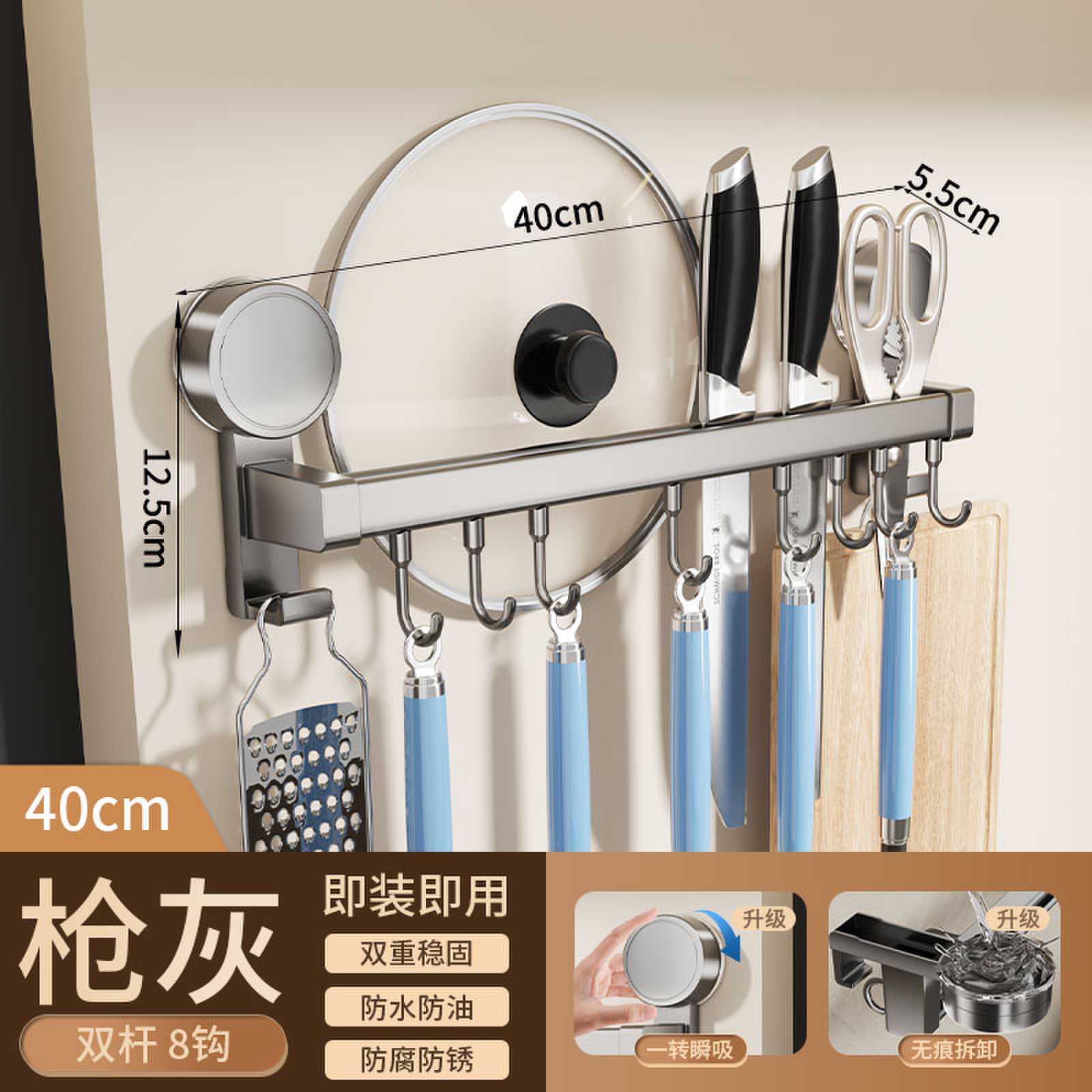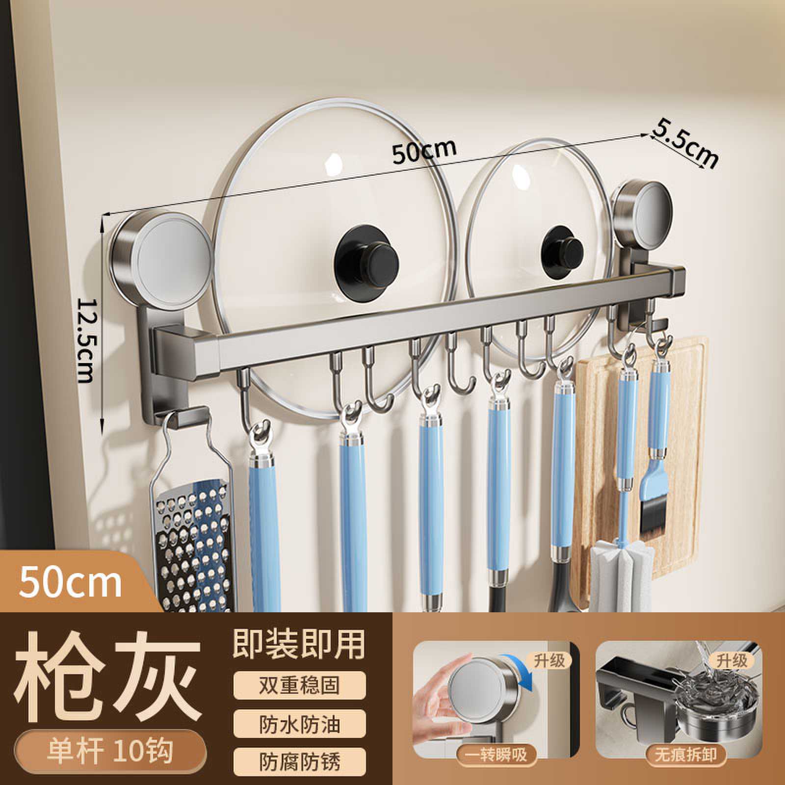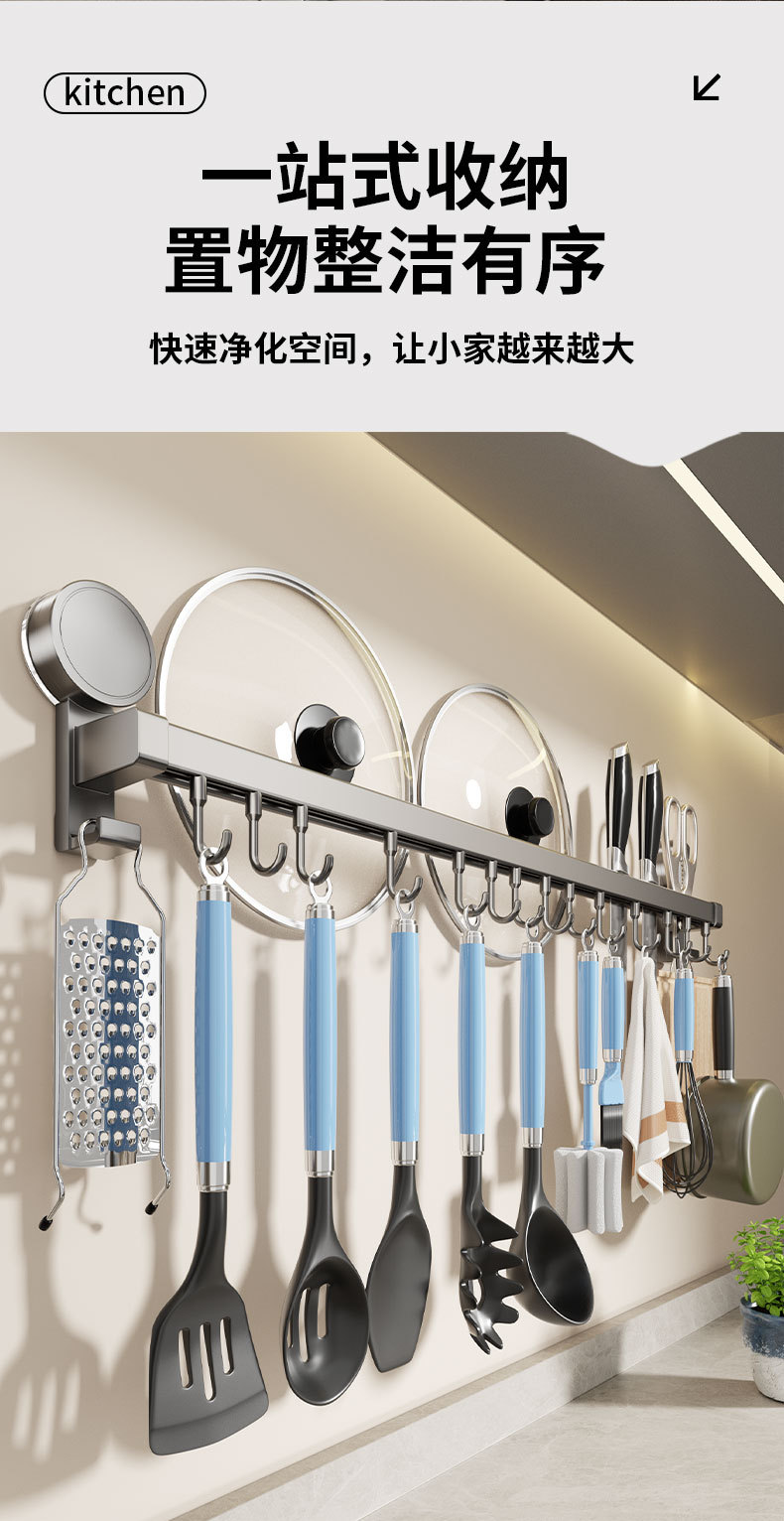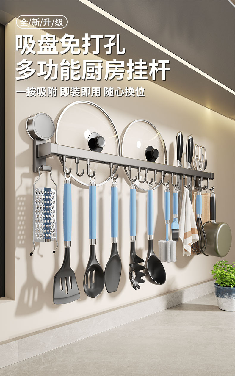 흡입 컵 주방 후크 펀치 무료 교수형 막대 주방 보관 랙 교수형 숟가락 보관 후크 벽걸이 선반스토어 가기
