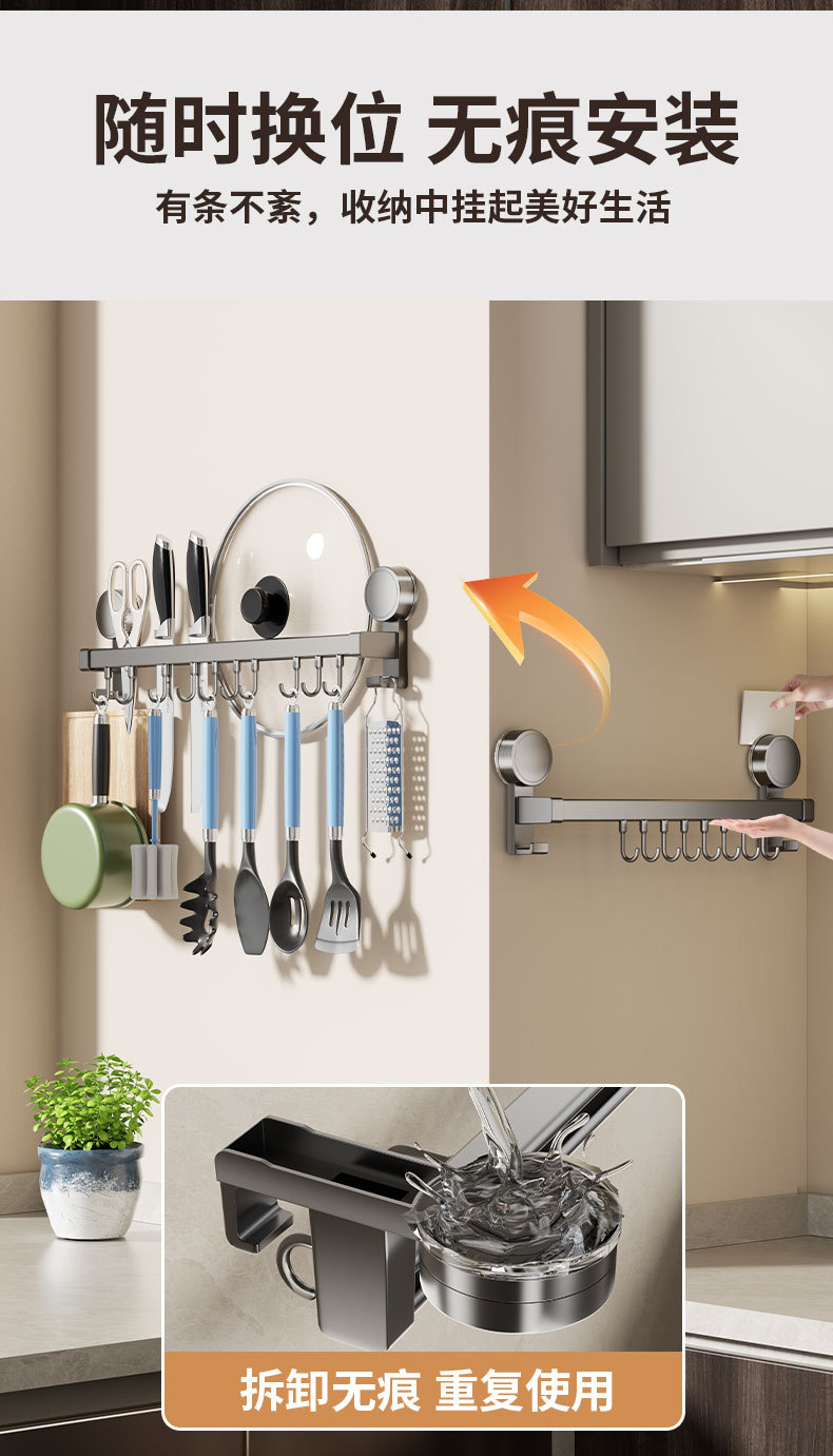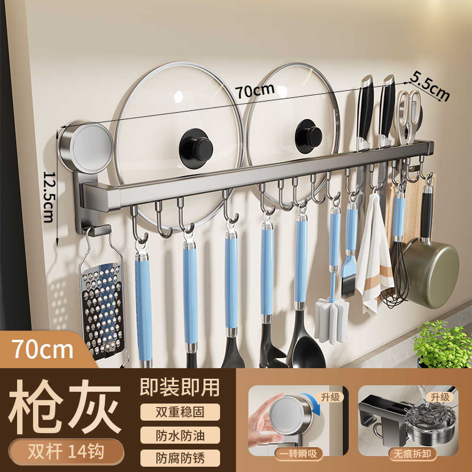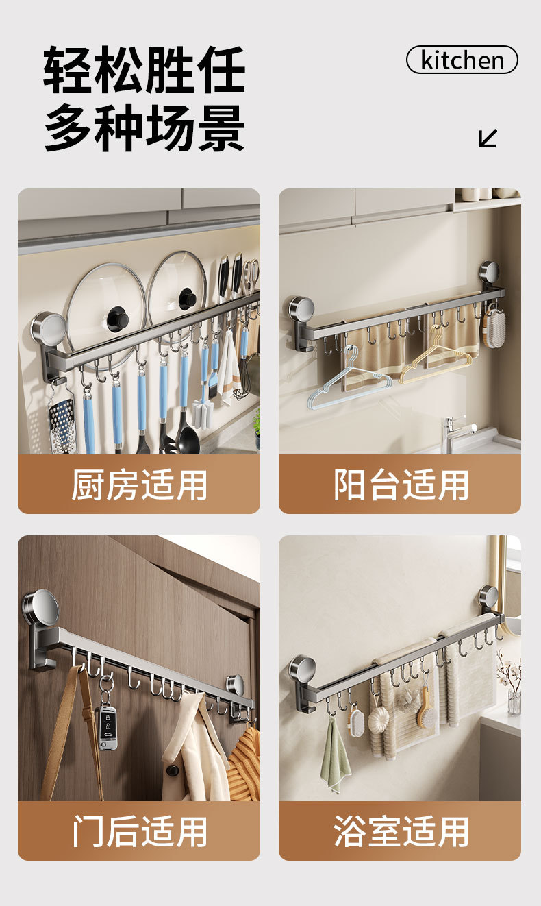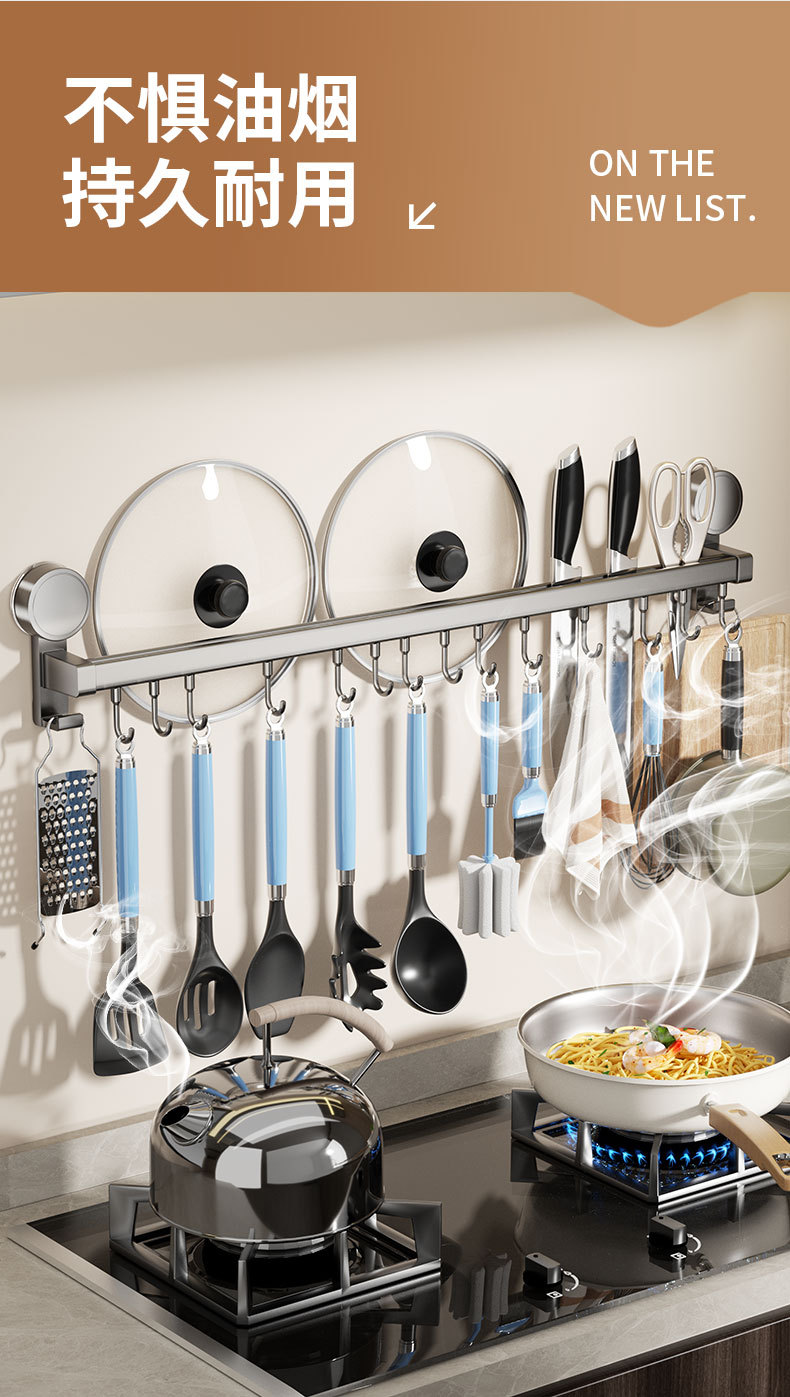 흡입 컵 주방 후크 펀치 무료 교수형 막대 주방 보관 랙 교수형 숟가락 보관 후크 벽걸이 선반스토어 가기