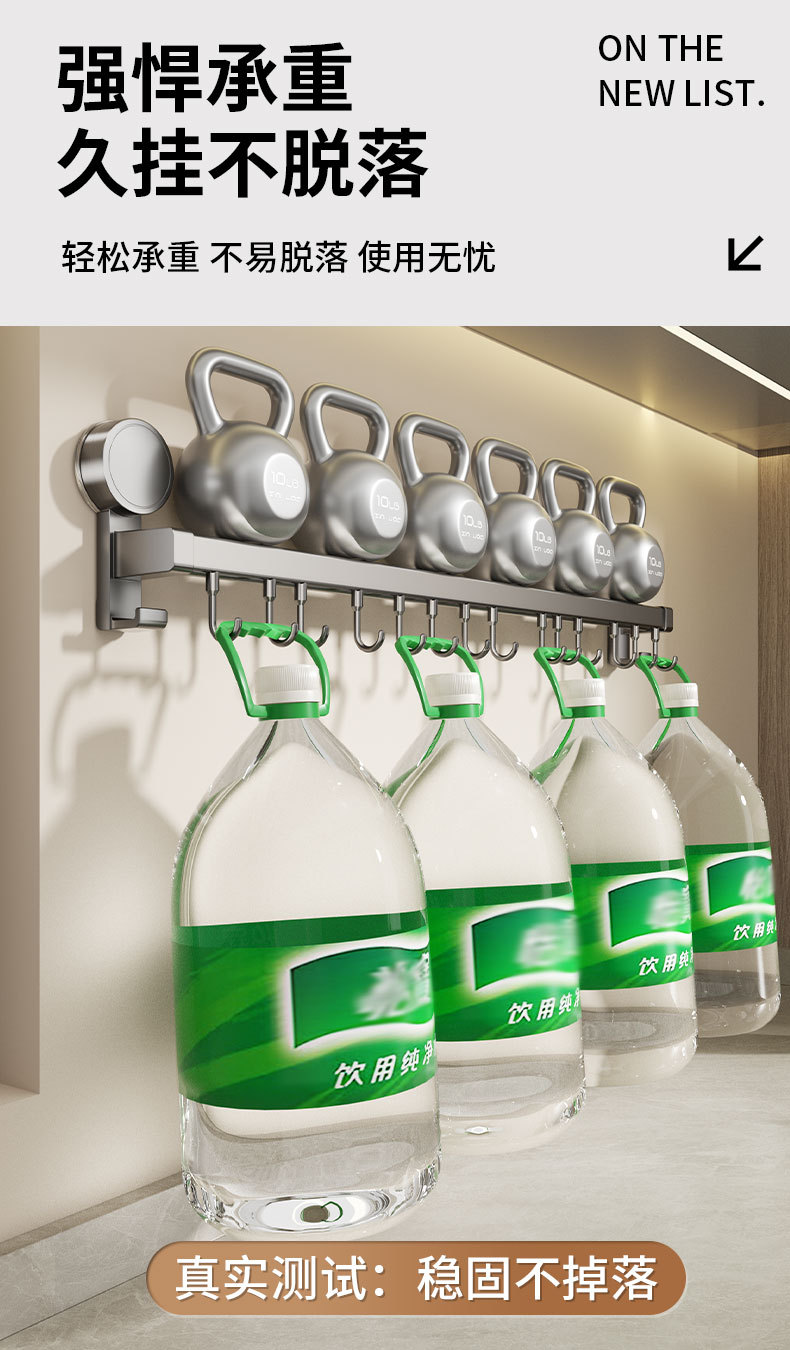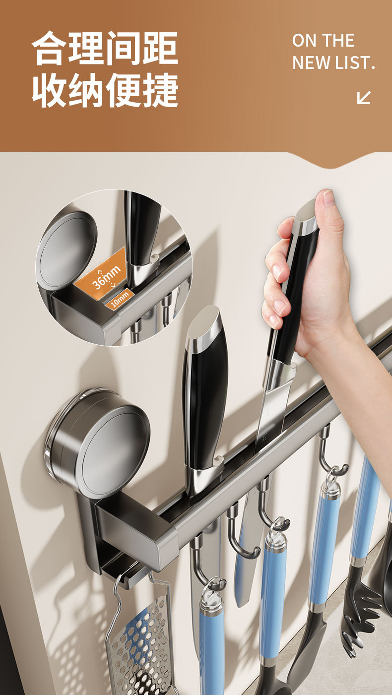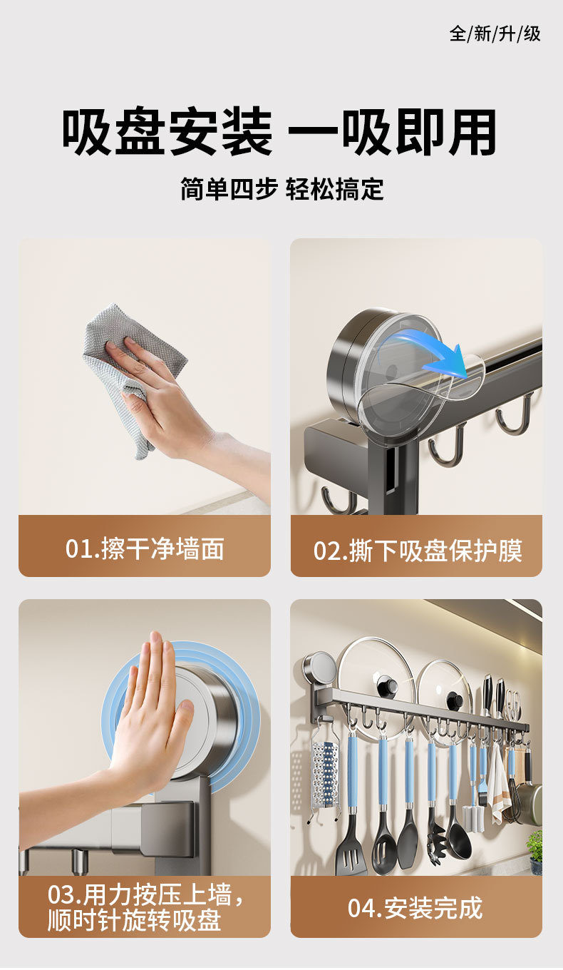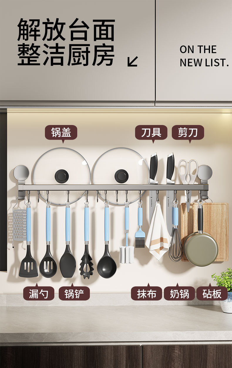흡입 컵 주방 후크 펀치 무료 교수형 막대 주방 보관 랙 교수형 숟가락 보관 후크 벽걸이 선반스토어 가기