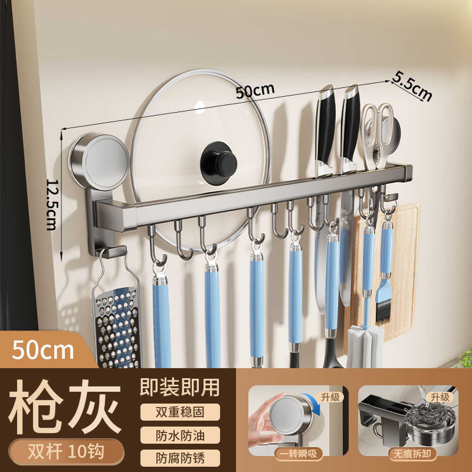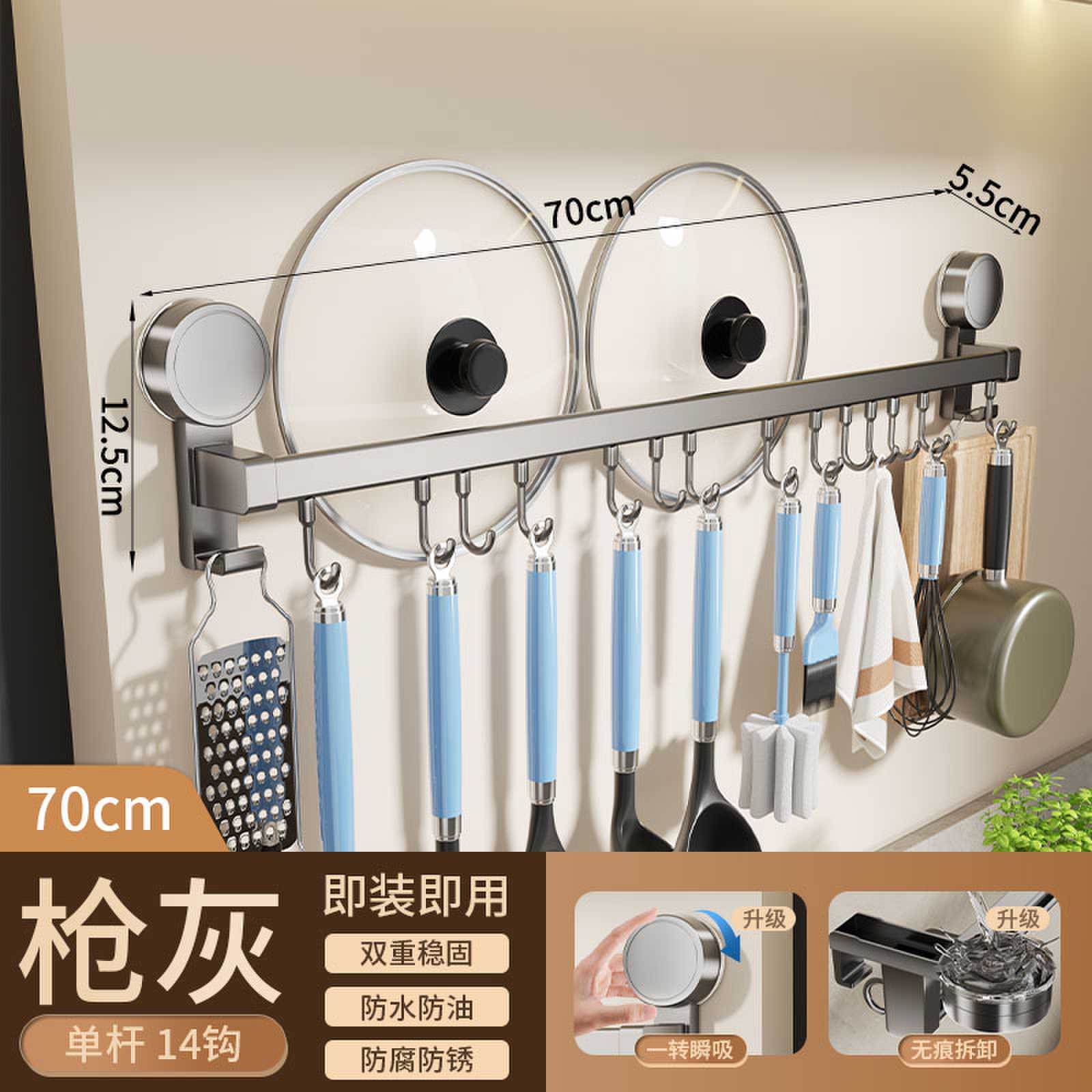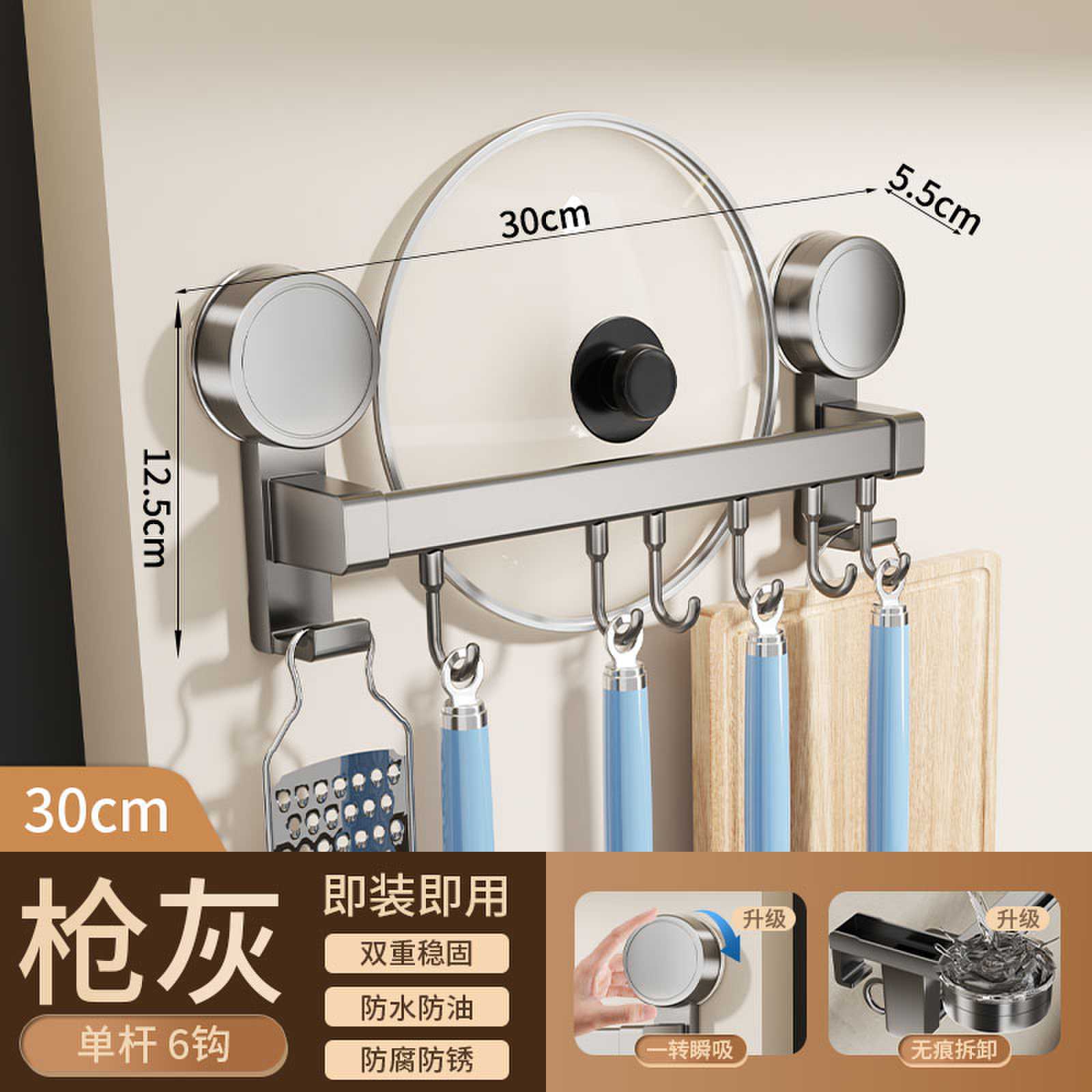 흡입 컵 주방 후크 펀치 무료 교수형 막대 주방 보관 랙 교수형 숟가락 보관 후크 벽걸이 선반