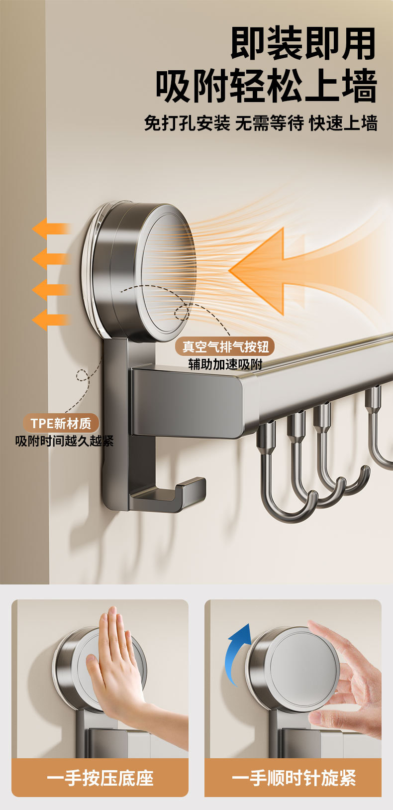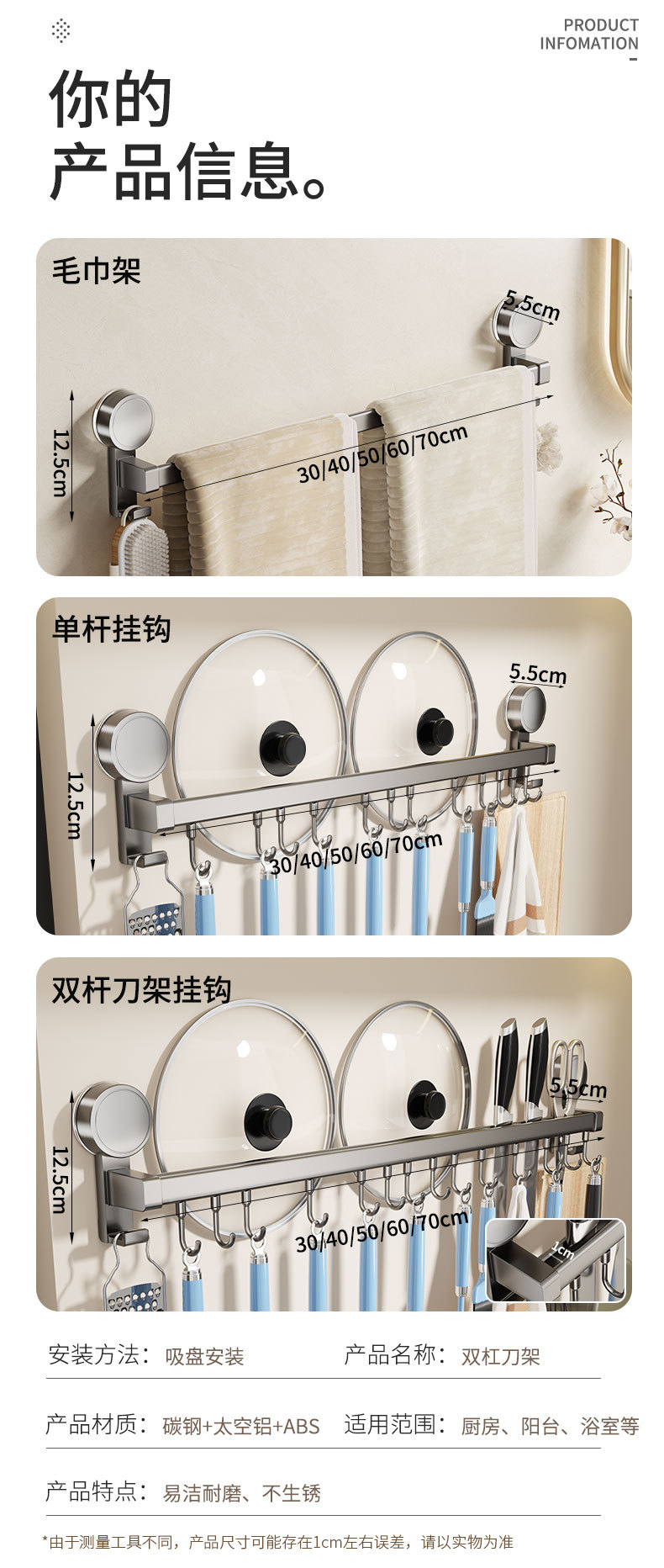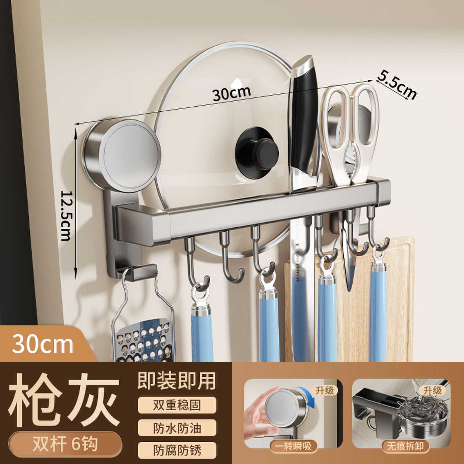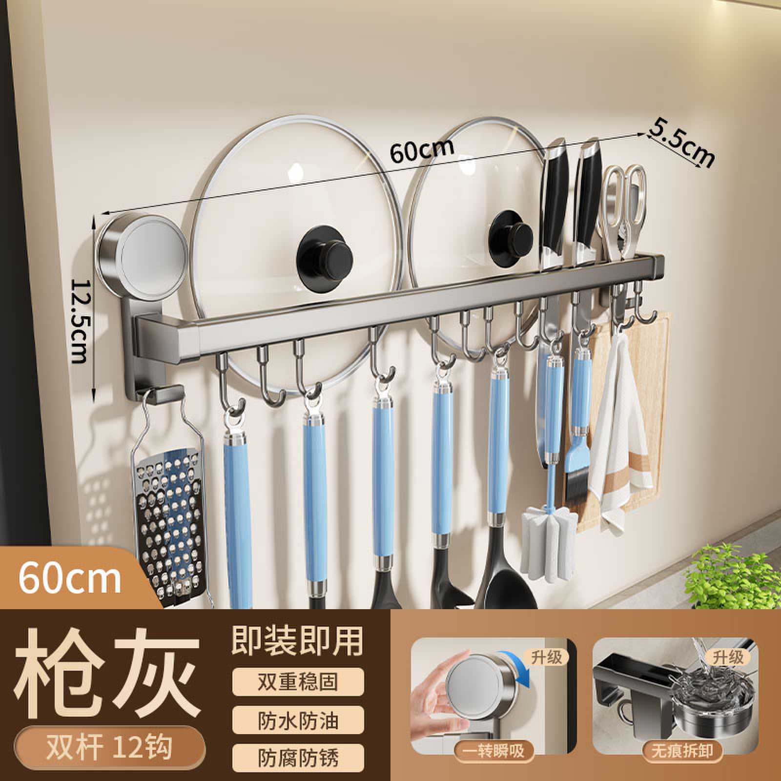 흡입 컵 주방 후크 펀치 무료 교수형 막대 주방 보관 랙 교수형 숟가락 보관 후크 벽걸이 선반