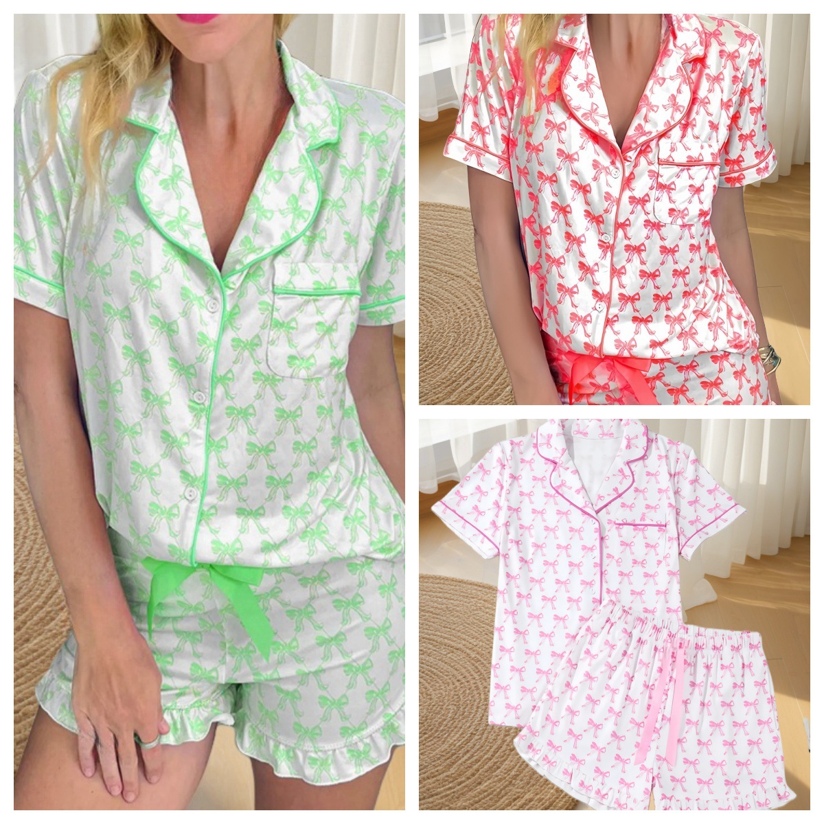 아마존 독립 역 유럽과 미국의 대외 무역 여성 봄과 여름 새로운 활 반팔 반바지 파자마 세트스토어 가기