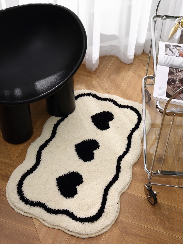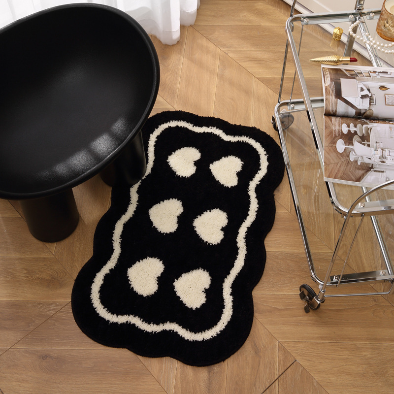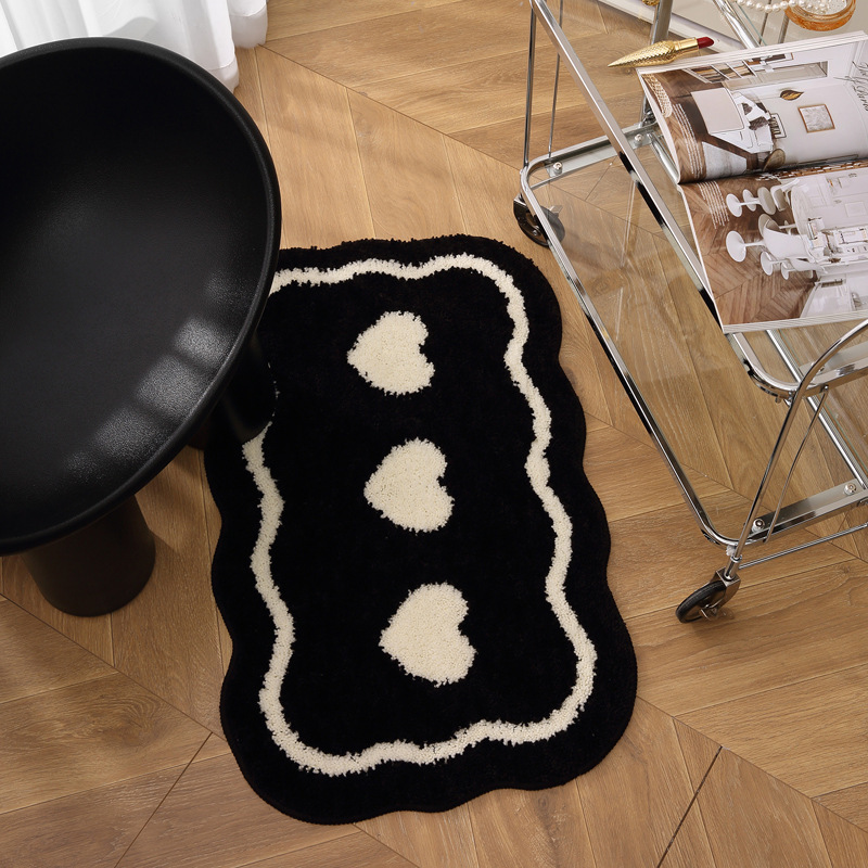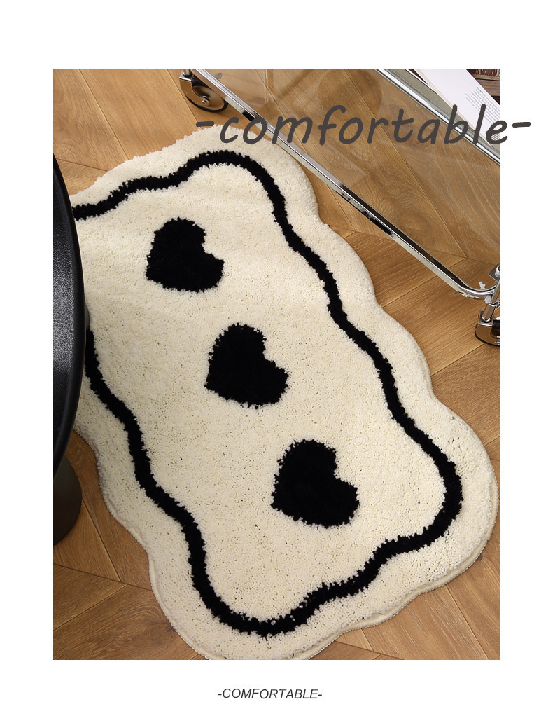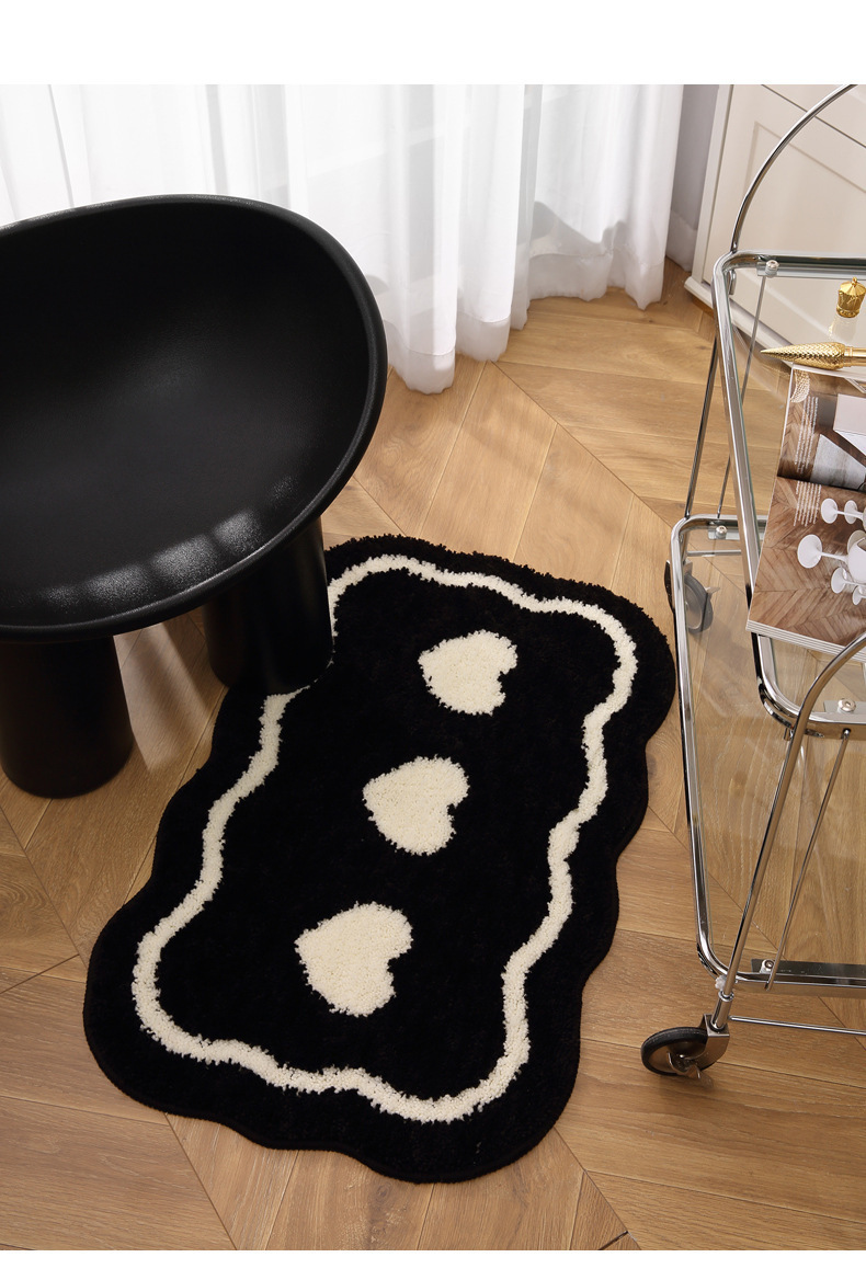 신선한 빛 럭셔리 흑백 사랑 욕실 문 흡수성 발 매트 가정용 내마모성 두꺼운 고정 카펫