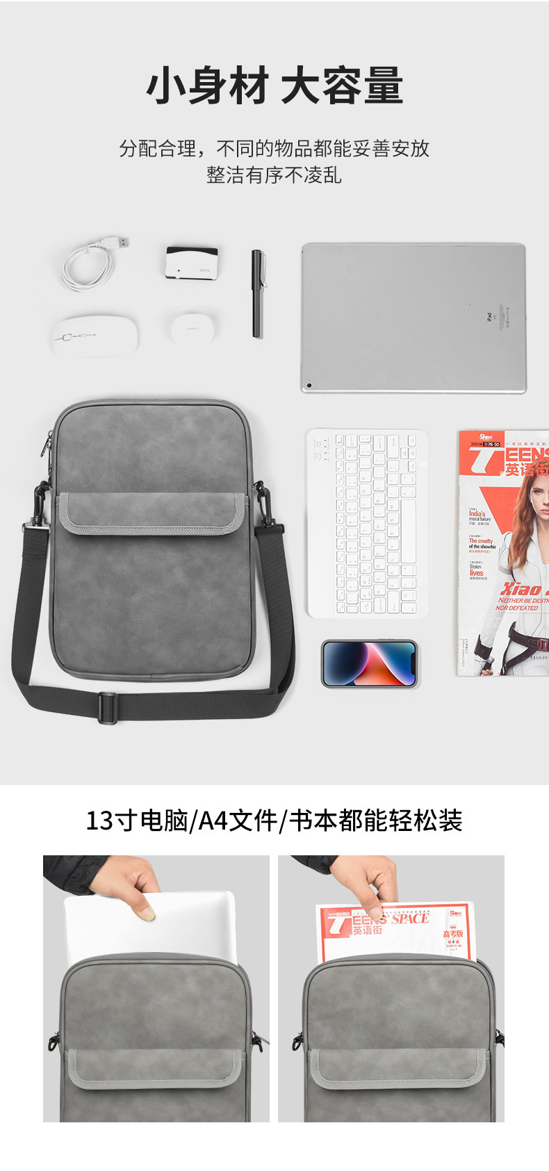 비즈니스 통근용 아이패드 태블릿 가방 고급스러운 플러시 소재 충격 방지 방수 숄더 태블릿 수납 가방 이너백