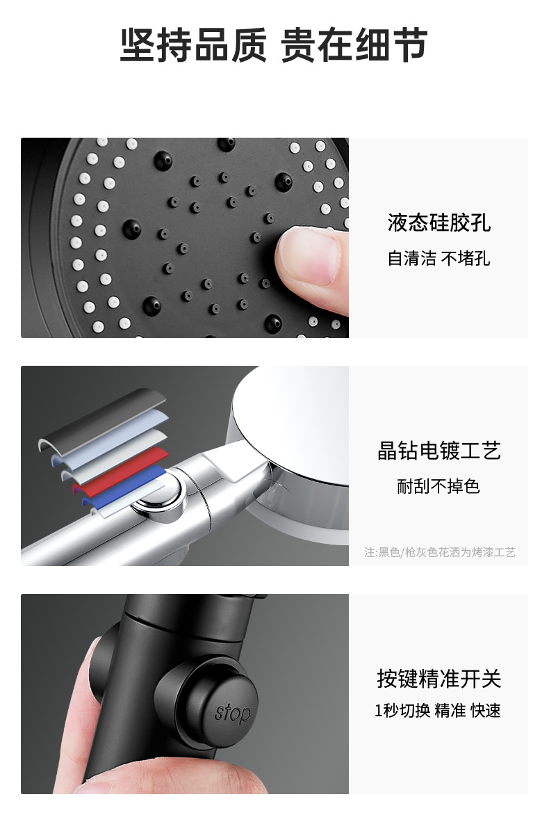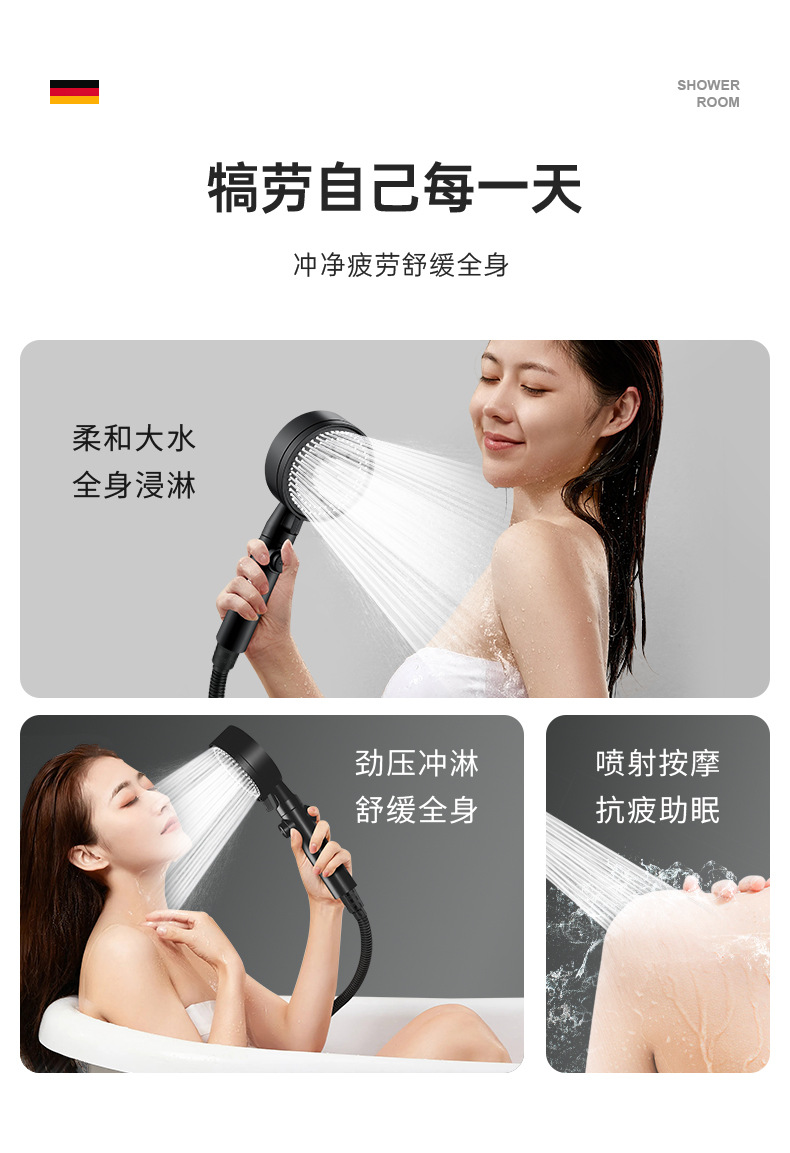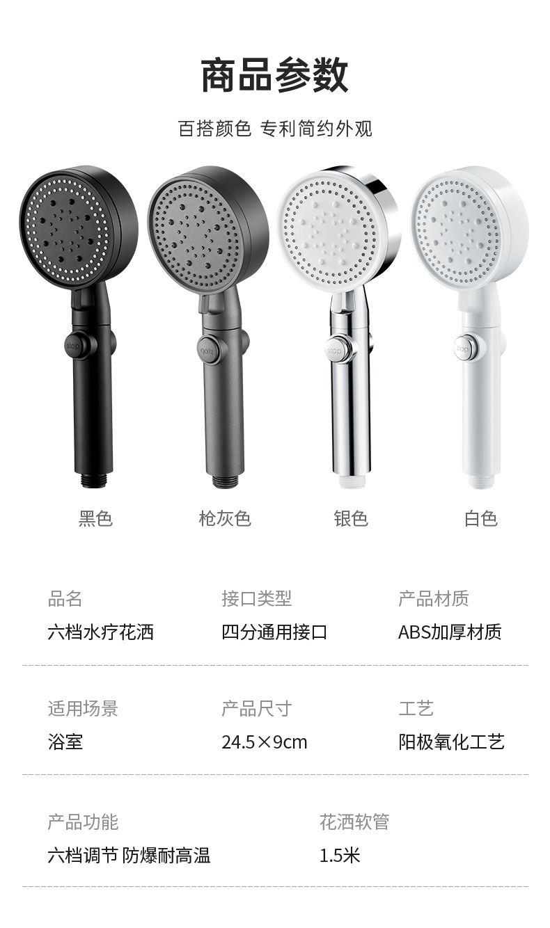 • 블랙 6단 슈퍼차저 샤워헤드(5세대)●업그레이드 및 강화 버전)