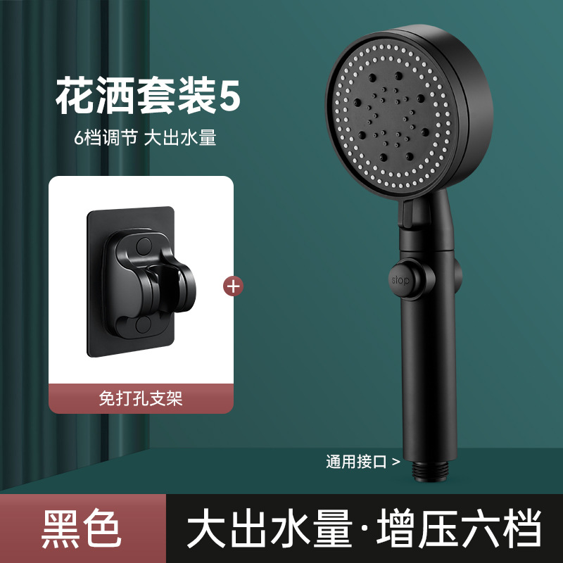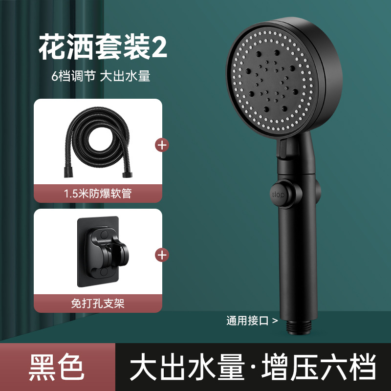 • [블랙 세트 2] 6단 슈퍼차저 샤워 + 1.5m 호스 + 브라켓