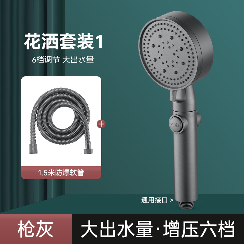 • [블랙 세트 1] 6단 슈퍼차저 샤워기 + 1.5m 호스