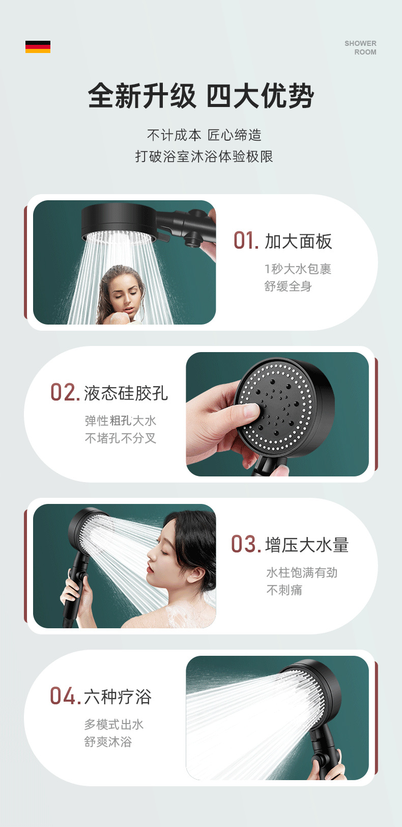 • 실버 6단 슈퍼차저 샤워헤드(5세대)●업그레이드 및 강화 버전)