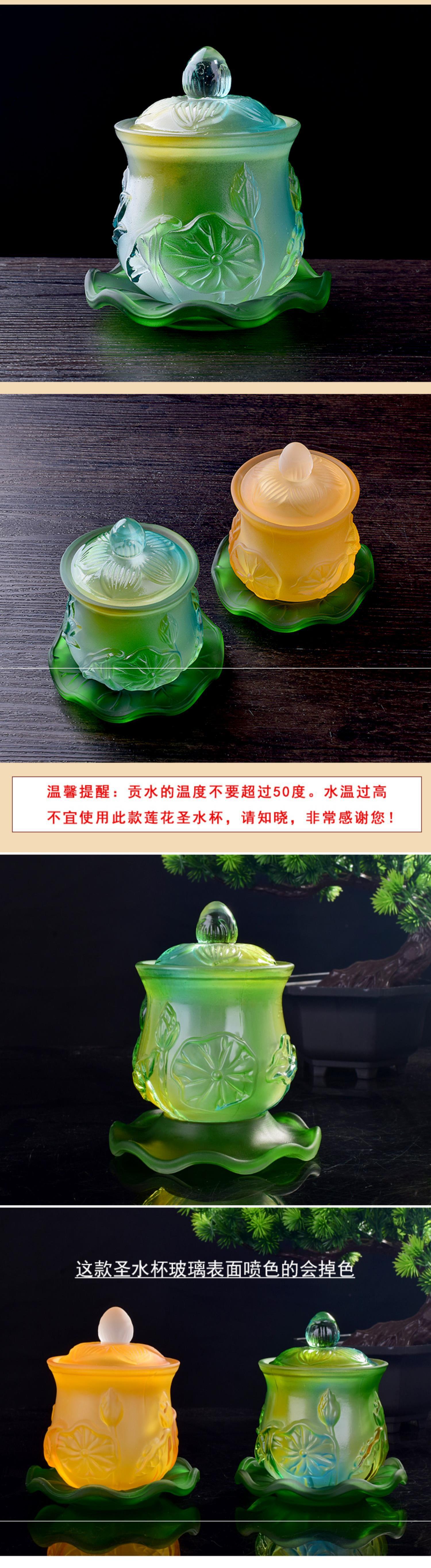 부처님 용품 모조 유리 연꽃 물 정화 컵 부처님 사전 공물 컵 부처님 연꽃 컵 장식품 Guanyin Cup 무료 배송스토어 가기