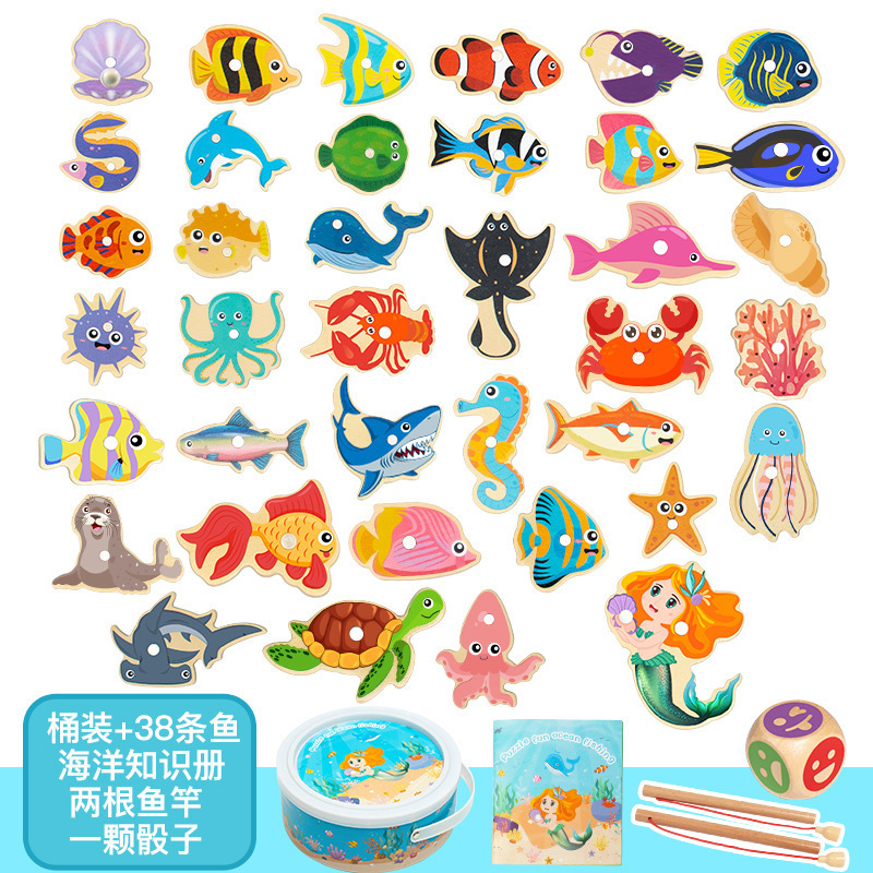 낚시 장난감 어린이 교육 장난감 나무 자석 새끼 고양이 소년과 소녀 놀이 집 조기 교육 어린이 게임 1-3스토어 가기
